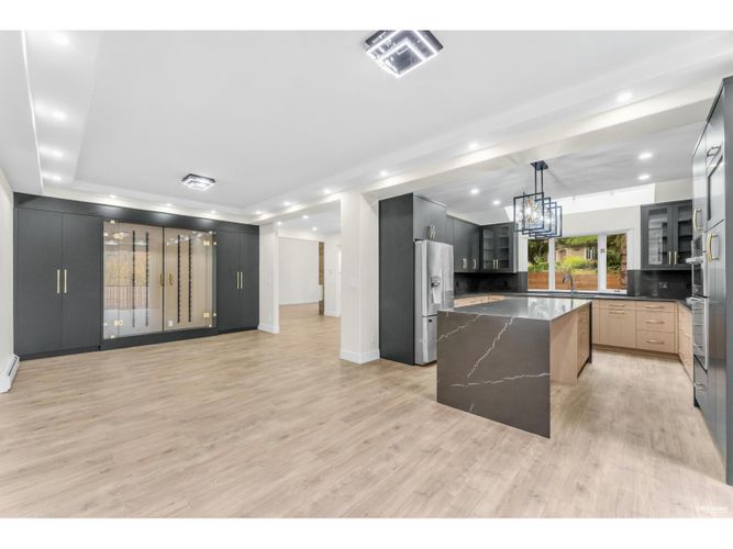 Welcome to this nearly 4,000 sq.ft. architectural masterpiece located in the most prestigious pocket of South Surrey. Completely reimagined from top to bottom with no expense spared, this luxury residence offers the perfect blend of sophistication and comfort. A grand spiral staircase and elegant chandeliers set the tone as you enter through the impressive foyer, while a dual-sided fireplace and soaring ceilings elevate the sense of space and style. The open-concept family room showcases oversized floor-to-ceiling windows flooding the home with natural light. The chef’s kitchen is a true showpiece — featuring premium finishes, a custom wine rack, and seamless indoor-outdoor flow to a private balcony. Additional highlights include a 3-car garage, sauna, truly a TROPHY PROPERTY.