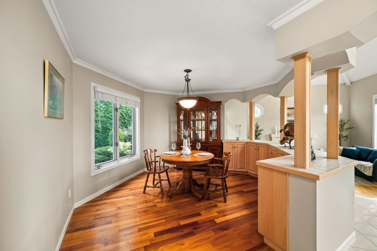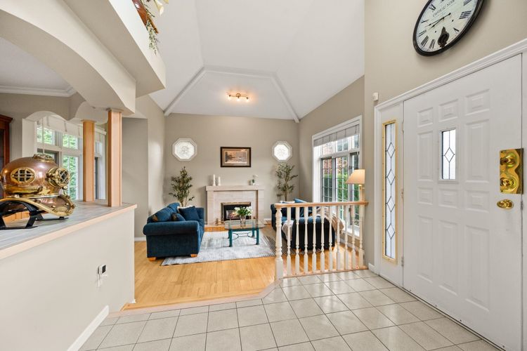 Tucked away on a quiet cul-de-sac in prestigious Panorama Ridge, this charming 3 bdrm, 2.5 bthrm home is surrounded by multi-million-dollar estates—offering executive living without the price tag. The grand brick façade gives timeless curb appeal while inside offers approx 2,000 SF of well-planned space. Updates include roof (2018, 25-yr shingles), Low-E windows (2007), renovated main bath (2023) & ensuite w/ heated floors. The original ESWA electric heating system was state-of-the-art for its time, complemented by 2 gas fireplaces. Enjoy the private b/y w/ artificial turf, pond, water feature & irrigation plus an insulated, wired room off the patio—ideal office, studio or hobby space.
