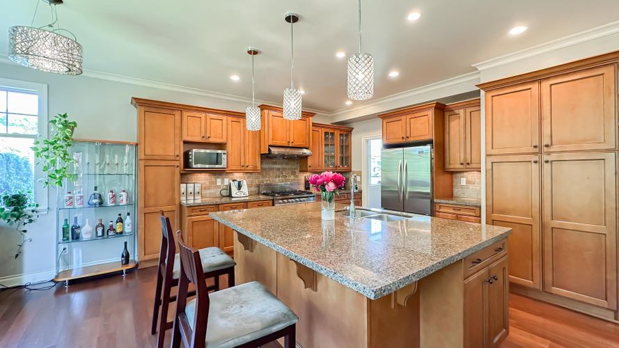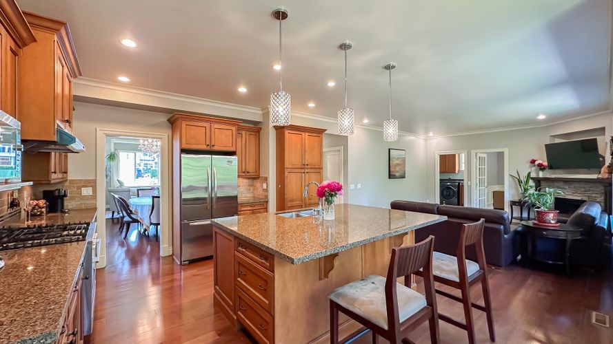 Gorgerous , well loved, well lived, well maintenced home by well known builder "Noort". Quiet corner lot. Main floor fetures walnute engineared floor, a formal living room and dinning rooms, a den with crowned cellings and pannelled waills (could be bedroom), Open kitchen features a large spacious granite island to entertain your guests. High end appliances and a nook eating area over looking trees scenery. Upstairs features 4 bedrooms plus a den, with a walk-in closet master bedroom, 5 pcs ensuite w/a stand alone shower and soaker tub. Basement has 2 bedrooms, 2 bathrooms, recreation/gym area. Don't miss the opportunity!