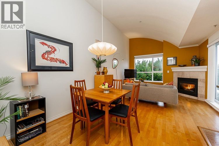 Top-floor corner gem at Evergreen Place! An 18 suite boutique building tucked away on a quiet street, just steps to Commercial Drive. This 808 sqft 2 bed, 2 bath home features vaulted ceilings, new window coverings, cozy gas fireplace, a peaceful patio overlooking treetops, with mountain & city views, and abundant natural light. The kitchen and both full bathrooms have been beautifully updated. Enjoy two side-by-side parking stalls (one with EV charger) - a rare Vancouver bonus - plus a storage locker and extra in-suite storage. Walk to cafe's, shops, parks, transit and all that the Drive has to offer. Bright, modern, and move in ready in one of the city's most vibrant neighborhoods. Pet & rental friendly (1 dog or 1 cat). Stop by the open house on Sat or Sun (Nov 1st & 2nd from 2-4pm). (id:26452)