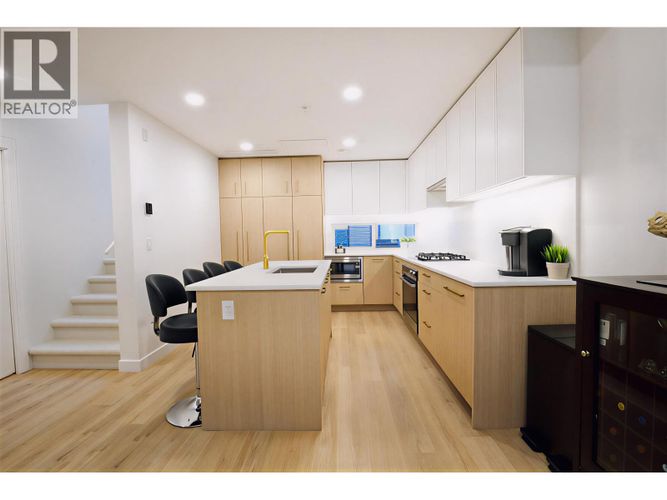 This 3 level, 4 bedroom, 2 and a half bath townhouse is located on a quiet, tree-lined stretch of Rochester in West Coquitlam. The main level features a seamless kitchen, living, and dining area plus a powder room, with direct access to your patio-complete with gas and water hookups. Featuring integrated Fisher & Paykel appliances with a gas cooktop, air conditioning, a smart thermostat, upgraded oak flooring in all bedrooms, and glass shower doors. The primary suite spans the top level with two spacious walk-in closets, heated floors in the ensuite, and a private patio. Just a 10-minute walk to Lougheed Town Centre SkyTrain and mall, restaurants, shopping, and a nearby golf course. EV parking, 1 storage locker, and dedicated e-bike storage are included. (id:26452)