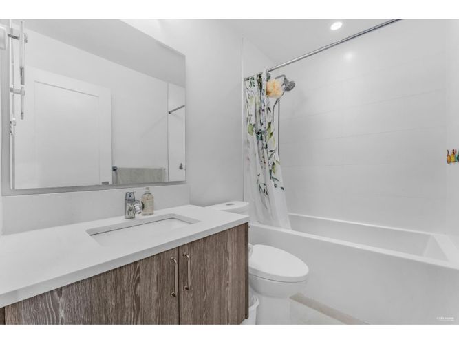 Located in the Canopy community at Tynehead Park, this 4-bed/3.5-bath home features a ground-floor bedroom with full bath, perfect for in-laws or guests. The main level offers a spacious open living, dining, and kitchen area with quartz counters, gas range, and stainless appliances, plus a large deck. Upstairs is a huge primary bedroom that fits a king bed, with walk-through closets and ensuite, plus two additional bedrooms. With a bathroom on every floor and a double side-by-side garage, convenience is built in. Close to the clubhouse, gym, trails, transit, and shopping. Open House Sun 23, 1:30-3:30 PM. (id:26452)