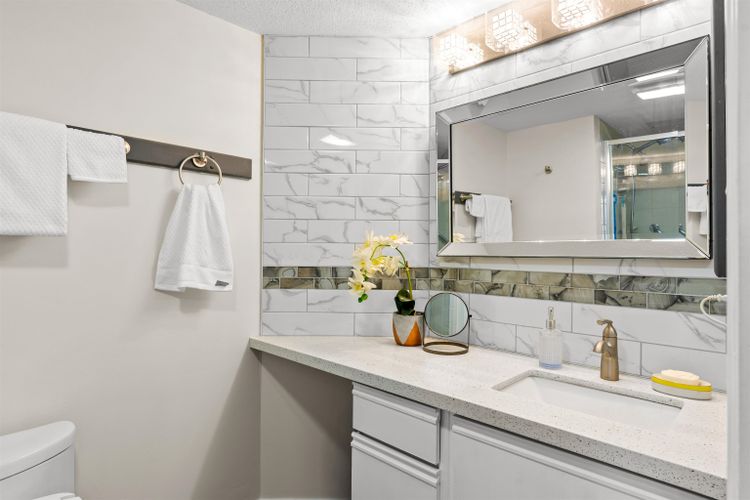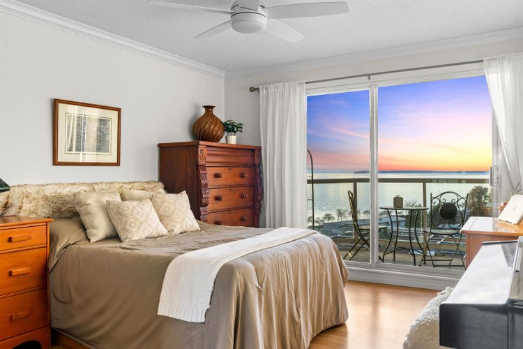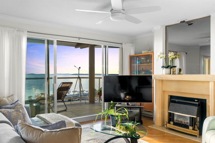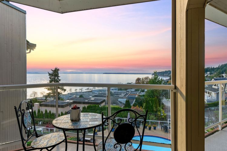 Welcome to Victoria Terrace by Bosa-your seaside retreat in the heart of White Rock! Perfectly positioned in one of the area's most coveted locations, this 2 Bed + Den, 2 Bath home offers completely unobstructed, panoramic views from your 2 balconies of the ocean, pier & Gulf Islands from every room. Thoughtfully renovated, the kitchen dazzles with sleek cabinetry, quartz counters & stainless steel appliances, while both bathrooms have been beautifully updated with modern finishes. Resort-style living awaits with a sparkling outdoor pool & hot tub overlooking the ocean. Just steps to the promenade, beach, cafés & restaurants, this home truly embodies the White Rock lifestyle. In a well-managed, 55+ community that welcomes pets, Victoria Terrace blends luxury, comfort & tranquility. (id:26452)