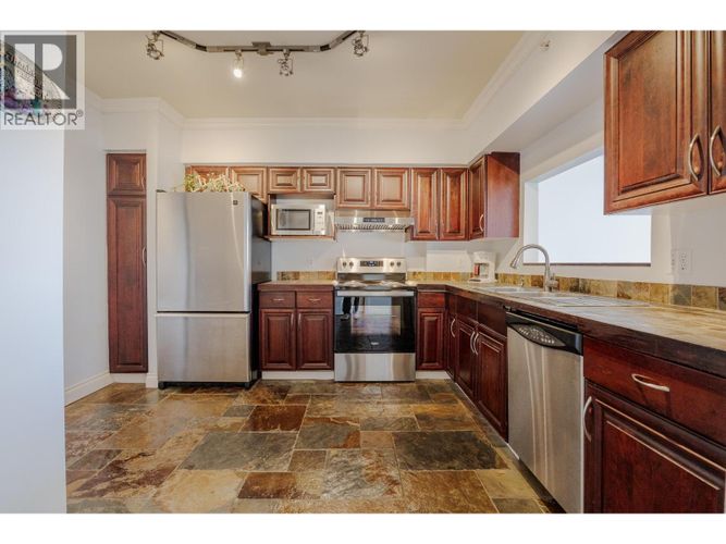 The Frontenac! This 3 bed/ 2bath 1450 square ft top floor, corner unit is ideally located 1 block from the skytrain station, Coquitlam Center & all amenities. The main living space is bright & spacious featuring, several lg windows with California style shutters & a balcony, with views of the city & mountains. The beautiful brick fireplace & crown mouldings throughout the unit add a finished touch. The lg kitchen has S/S appliances, ample counter space & cabinets for all your cooking & entertainment needs. The Primary bedrm has a second balcony providing additional outdoor living space to enjoy quiet mornings or relaxing summer days. The ensuite features a spa like shower for extra comfort. The numerous closets, built-ins in the bedroom & insuite laundry adds to the convenience of this unit. (id:26452)