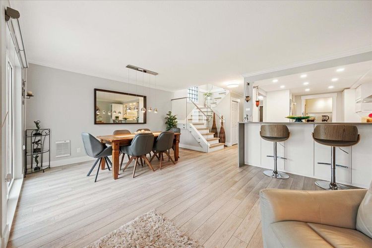 The Juliana offers a rare opportunity in one of White Rock's most walkable locations. A sophisticated 3-bd, 2.5-bath modern corner residence. Meticulous and beautiful updates make this home shine. At the heart, a culinary kitchen workspace equipped with Electrolux full-height refrigerator and freezer columns, Jenn-Air induction range with double and steam ovens. An adjacent walk-through pantry provides a secondary prep sink and extensive cabinetry for serious home cooks. Upper-level primary bedroom retreats beneath soaring vaulted ceilings to a tranquil, spa-inspired bath. Main floor living unfolds across connected kitchen, dining, and sitting areas. Private outdoor sun soaked terrace is BBQ friendly. 2 blocks to shopping & restaurants. Desirable Semiahmoo school catchment. Stunning home (id:26452)