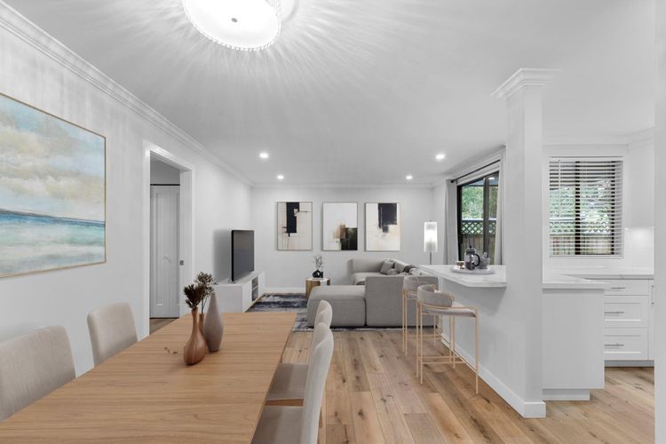 Discover modern luxury in this stunning renovated 3 townhouse. Spanning 987 square feet, this home offers a perfect blend of style, comfort, and convenience. Elegant luxury vinyl flooring throughout, complemented by stylish new lighting fixtures. The modern kitchen with sleek quartz countertops and top-of-the-line stainless steel appliances. The inviting living and dining area provides ample space for relaxation and entertainment. The newly renovated bathroom offers a tranquil retreat, while the in-suite laundry room adds to the ease of everyday living. A desirable feature for pet owners, this townhouse is pet-friendly, including dogs and has a large ground level patio. Don't miss this incredible opportunity! parking stall 55&103 **OPEN HOUSE Sat / Sun Feb 14 & !5 from 2-4pm**