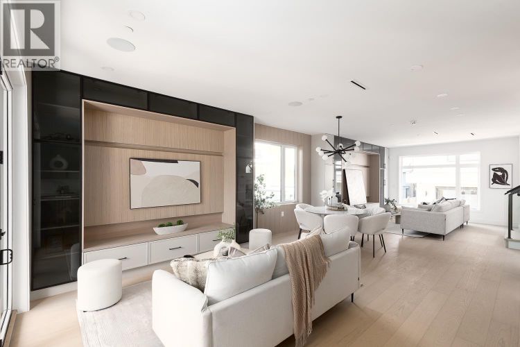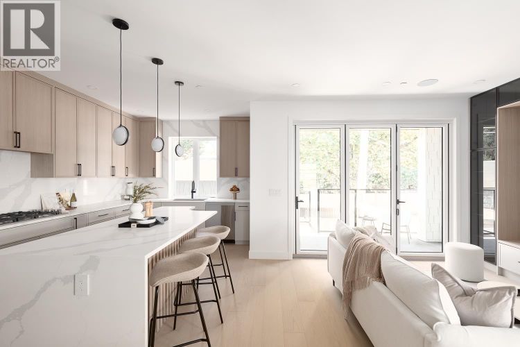 This fully detached carriage home offers over 2,600sf across three spacious levels with no shared walls, providing true single-family living in South Granville. The main floor boasts over 900sf with full-sized living, dining, and family rooms: ideal for entertaining or everyday life. A large kitchen anchors the space with access to the rear yard deck. Upstairs are three large bedrooms, including a massive primary with walk-in closet and a luxe 5-piece ensuite. The lower level is roughed in for a 2-bedroom suite or can be enjoyed as additional living space. Private 1-car garage included. Thoughtful layout and generous proportions make this home perfect for families or those needing room to grow. Radiant heat, A/C and located near top schools, parks, shops, restaurants, and transit.