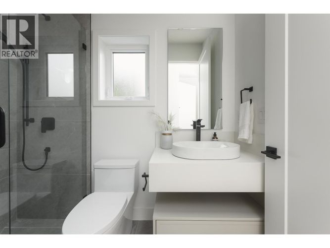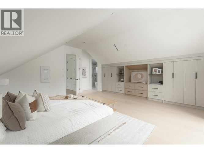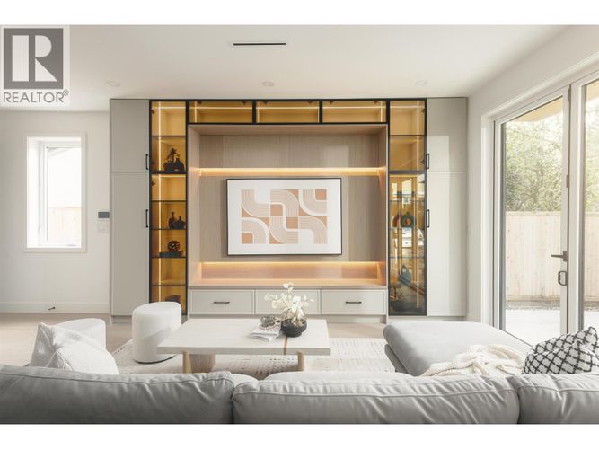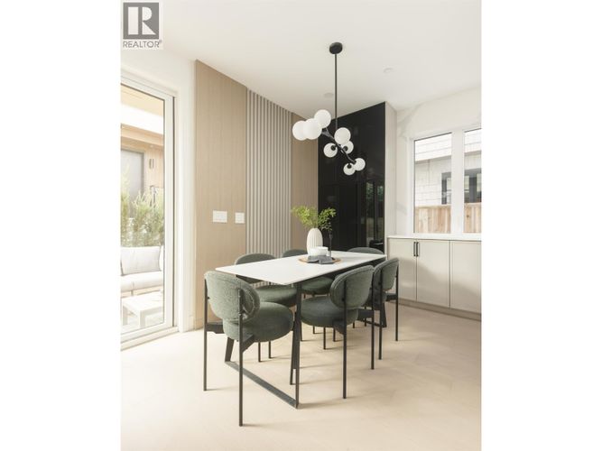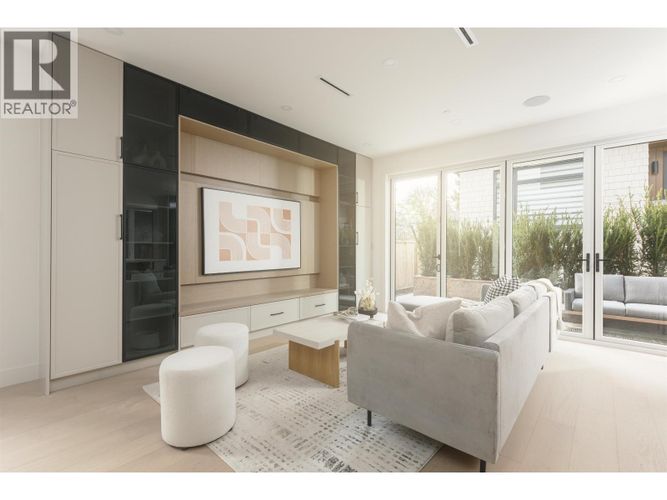 Back 1/2 duplex in desirable South Granville offering over 2,000sf, 4 bedrooms & 3.5 baths across expansive 3 levels. Designed to live like a detached home with a spacious island kitchen, full dining area & expansive living space. Eclipse doors open to a large private patio & yard for seamless indoor-outdoor entertaining. Upstairs features 3 generous bedrooms including a house-sized primary with walk-in closet & spa-like ensuite. The massive top floor offers over-height ceilings, a private balcony & flexibility to use as a 4th bedroom, office, gym or media room. Radiant heat, A/C, Google Nest, built-in speakers & secured parking provide modern convenience. Exceptional location near parks, shops, cafés & transit, with easy access to Kerrisdale, Oakridge & downtown.