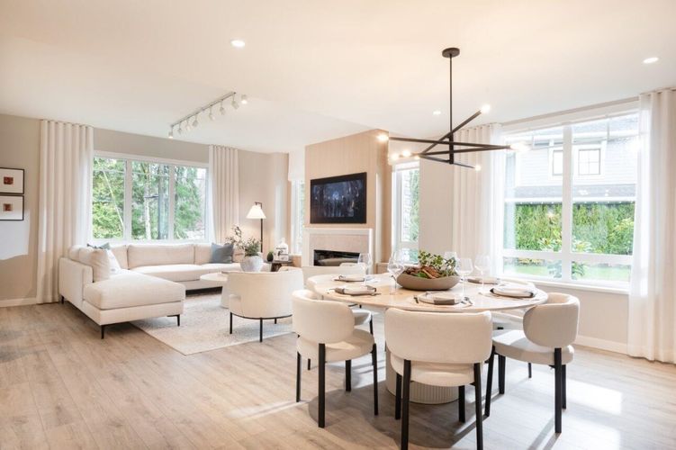 Come home to this 4 bed 4.5 bath townhome at Polygon's Partington Creek. Be part of the vibrant Burke Mountain community and enjoy easy access to the future Burke Mountain Village. This bright 2,549 sq. ft. home boasts overheight main floor ceilings, large windows, and a deck off the kitchen. The kitchen features sleek appliances, stone countertops and an expansive island. Upstairs, find luxury with a spa-inspired ensuite and a separate laundry room with sink, and downstairs enjoy the addition of a recreation room plus flex space. Enjoy a side-by-side double-car garage equipped with level 2 EV charging, AC and access to the Creekside Club! Visit our sales office and three display homes at 3674 Victoria Drive to learn more.