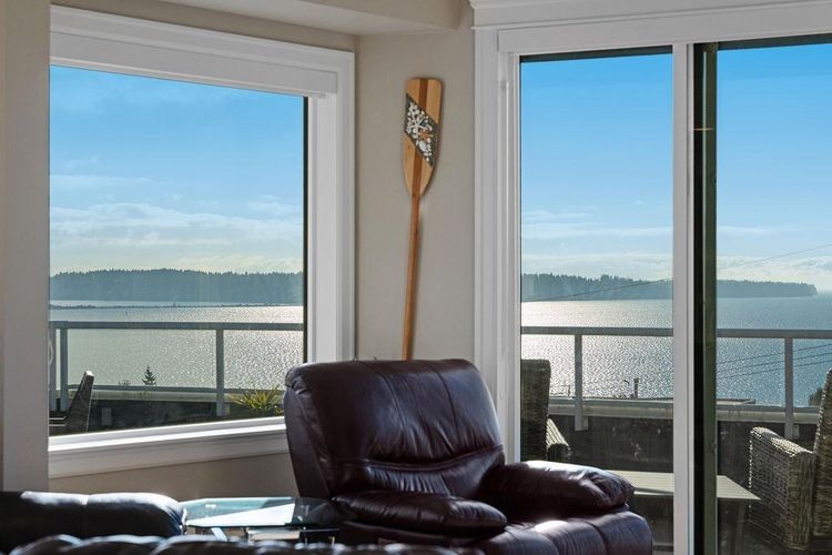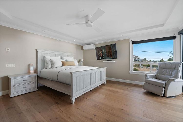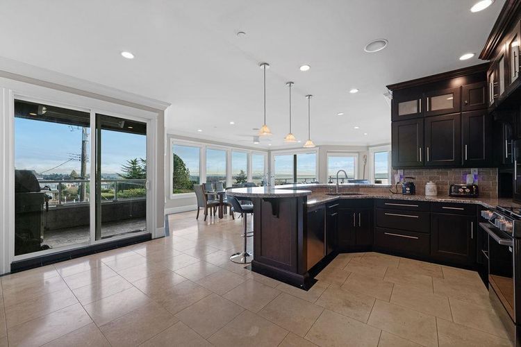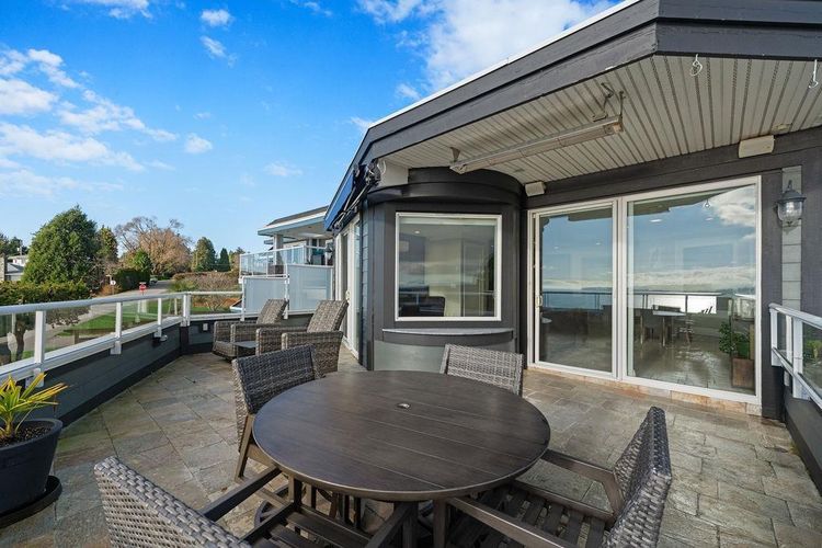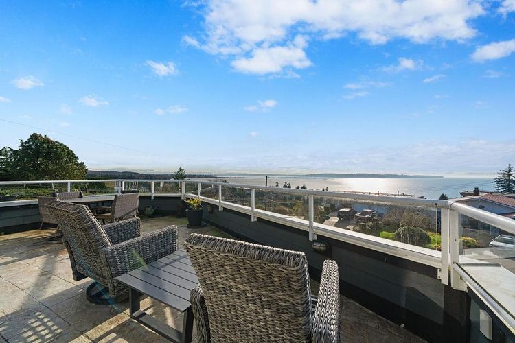 Stunning ocean-view residence offering 6 bedrooms, 6.5 bathrooms, and over 5,700 sq ft of thoughtfully designed living space in sought-after White Rock. This meticulously maintained home captures breathtaking panoramic ocean and mountain vistas from multiple levels. The upper floor is ideal for entertaining, featuring an open-concept layout and several balconies to take in the views. The main level hosts generously sized bedrooms, each with its own ensuite, including an expansive primary retreat with a beautifully updated ensuite and awe-inspiring ocean outlook. A self-contained 2-bedroom suite with private entrance provides excellent flexibility for extended family or guests. An exceptional opportunity to enjoy West Coast living at its finest.
