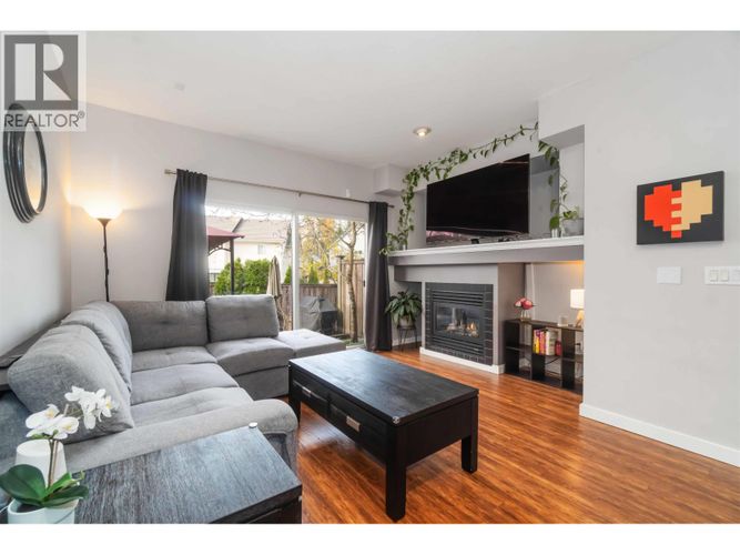 Mountain View Estates. This beautifully kept 2-bedroom, 3-bathroom townhouse is situated in a fantastic location in the complex with a lush green space at the back for exceptional privacy. The landscaped garden patio is a true delight & is perfect for relaxing & entertaining. The main floor showcases laminate flooring throughout, a spacious kitchen offering a breakfast bar, tiled backsplash, pot lights & a generous eating area with a charming bay window. The living room boasts a cozy fireplace, 2 piece bathroom on the main & direct slider access to the yard. Upstairs are two very spacious bedrooms, including a primary w/large closets & a 3-piece ensuite bathroom with a walk-in shower. EV charger in the garage. Book your private viewing today. ** OPEN HOUSE SATURDAY FEB 14TH 2 TO 4 PM**