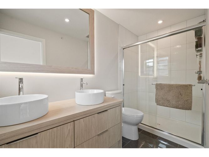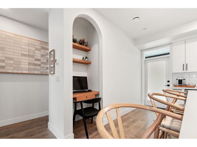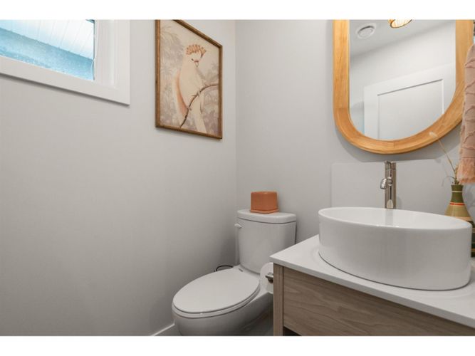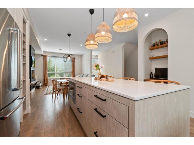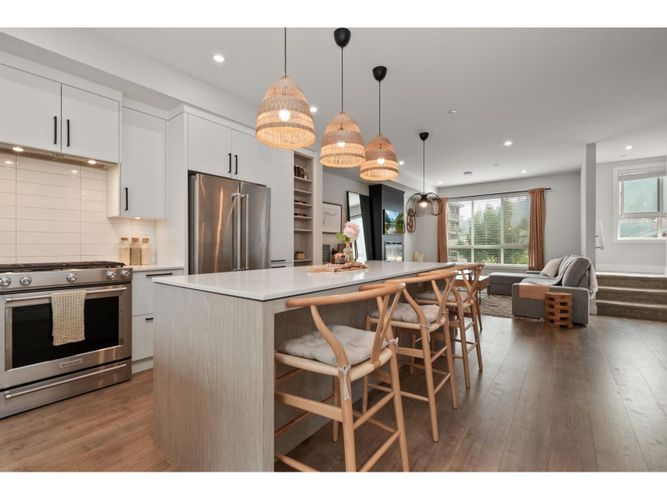 Prime Sardis location! Welcome to The Acadia—a stunning 4 bed, 4 bath townhome built in 2021, just steps to Garrison Crossing, Vedder River Trail, shops, and parks. Bright and modern, this home features a chef's kitchen with quartz counters, oversized island, and gas range, plus a covered patio with BBQ hookup for year-round entertaining. The lower level is ideal for a home-based business or guest space, while upstairs offers spacious bedrooms and quality finishes throughout. Complete with a double garage, this home blends style, convenience, and the perfect Sardis lifestyle. Located in the Stitos K-8 School catchment and minutes from UFV.