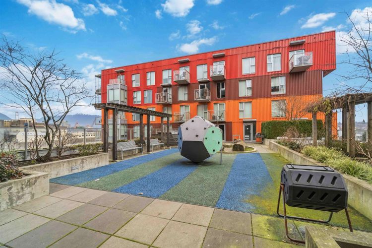 Welcome to Strathcona Village, your contemporary urban oasis in the heart of East Vancouver! This sleek 1bed home unit offers the most efficient layouts w/ no wasted space, enhanced by floor-to-ceiling windows that flood the home w/ natural light while enjoying the city & mountain views on your private balcony. Enjoy stylish laminate flooring, a modern open-concept chef's kitchen featuring stone countertops, contemporary cabinetry, Sonetto double sink, & s/s appliances, + a spa-inspired bathroom complete w/ a deep soaker tub for ultimate relaxation. Residents enjoy exclusive amenities such as lush landscaped rooftop gardens w/ BBQ areas, resident lounge, a fully equipped fitness centre & more! Short term rentals are allowed such as Airbnb. OPEN HOUSE Sat Feb 14th 1-3pm