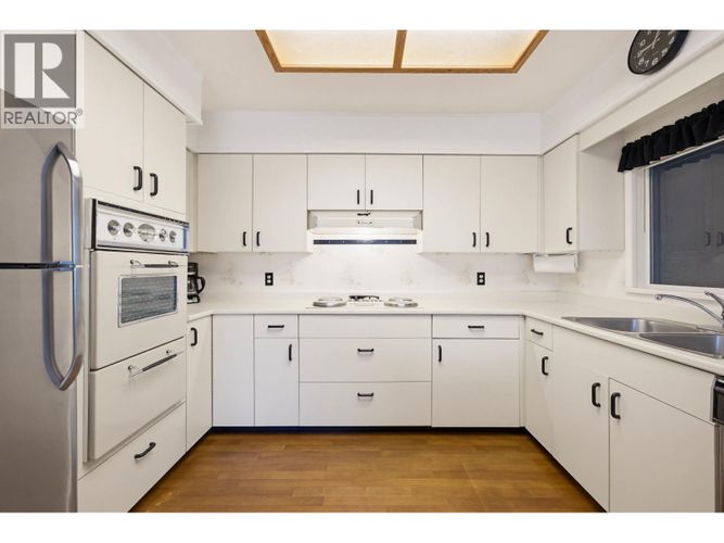 A rare and unique opportunity to own a home located on a 17,815sq.ft lot in 'The Village'! This long term owner home has been meticulously cared for- main floor has expansive living/dining areas, kitchen with adjacent eating area with picture window.Engineered wood floors extend from foyer, dining area and into kitchen. Upper floor has three bedrooms, primary bedroom has a full ensuite and a southern exposed balcony. Lower floor with oversize family room, wet bar area and third bathroom. Total 2748 sq.ft. of living space in this back split home! Oversize garage 19'x 29'(611 sq.ft.) Zoned RS1-see OCP for development opportunities.South exposed private garden with mature landscaping with multiple sitting areas!Lot dimensions-64'frontagex139'x165'x221'. Ideal location and lucrative area! (id:26452)