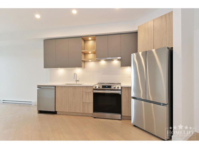 Charming 1 bed + den condo in the heart of Langley City. This modern, well-designed home features stainless steel appliances, quartz countertops, custom millwork, in-suite washer and dryer, and a functional den ideal for a home office or extra storage. Includes 1 parking stall and 1 storage locker. Located in a contemporary building with outdoor amenity space including seating, gardens, and a children's play area. Exceptional walkability just steps to Willowbrook Shopping Centre, T&T Supermarket, Costco, restaurants, parks, schools, transit, and Langley City Centre, with easy access to Hwy 1. Ideal urban living in a prime location. (id:26452)