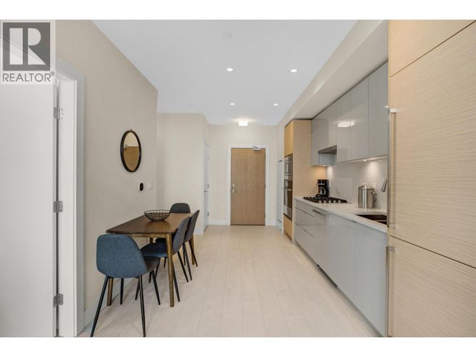 Welcome to MODE by Wesgroup in Vancouver´s vibrant River District. This well-designed 1 bedroom plus den home offers a functional open-concept layout with quality finishes throughout. The versatile den is ideal for a home office or flex space, and the modern kitchen features integrated appliances, sleek cabinetry, and thoughtful storage. East facing windows allow for great natural light, creating a bright and comfortable living space. Residents enjoy an impressive lineup of amenities including a fully equipped fitness centre, co-working space, indoor/outdoor lounge, rooftop terrace, hot tub, dog wash, guest suites, and daytime concierge. Steps to shops, dining, groceries, cafés, parks, riverfront trails, and transit, with easy access to Metrotown and Downtown. Includes parking and storage. (id:26452)