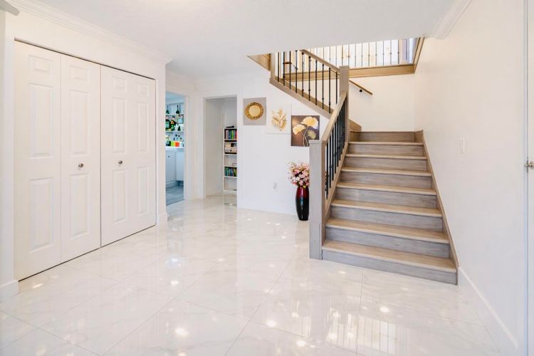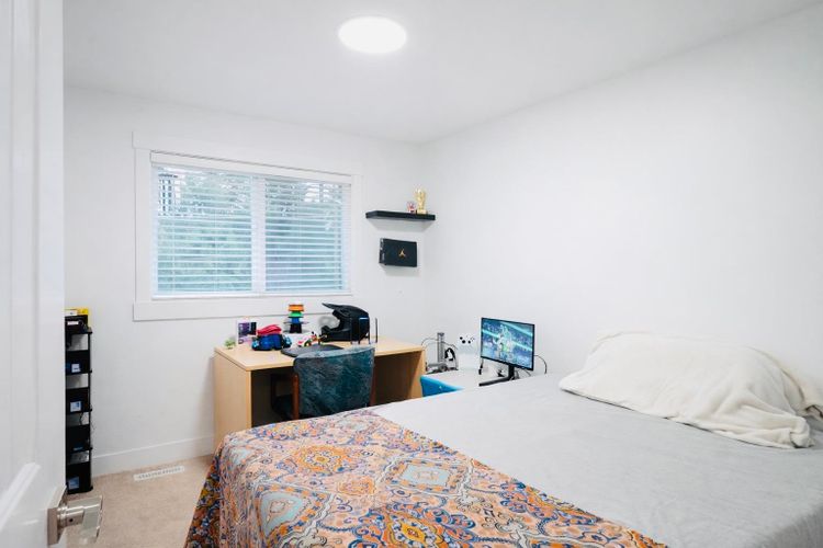 Beautifully renovated inside and out, this meticulously maintained 2,355 sq ft home showcases sleek, modern finishes throughout. Offering 5 bedrooms, 4 full baths, and 2 kitchens, the layout is bright, functional, and ideal for growing or multi-generational families. The main level features spacious living and dining areas plus a private patio. Downstairs includes 2 bedrooms, a large kitchen, and a separate entrance. Set on a just-under 6,500 sq ft lot with a fully fenced backyard and a 14 ft privacy hedge, plus ample parking. Quiet street close to parks, schools, Highstreet, shopping, recreation, places of worship, and Highway 1 access.