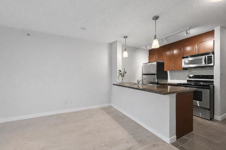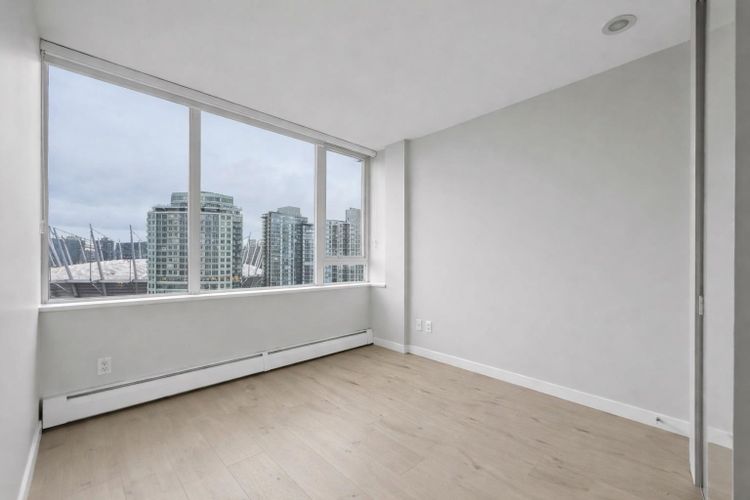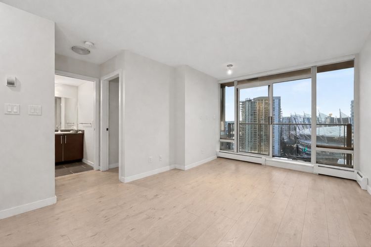 Stunning SW-facing suite in Firenze Tower II with breathtaking 180° views of False Creek, city skyline, Rogers Arena, & BC Place. This bright, open-concept home offers 1 bedroom + den, 1 full bath, in-suite laundry, and an efficient layout with quality finishes and stainless steel appliances. Spacious living area opens to a private balcony—perfect for relaxing or entertaining. New flooring and fresh paint in 2025, move-in ready. Airbnb/short-term rentals allowed, ideal for investors or end-users. Resort-style amenities include indoor lap pool, hot tub, sauna, gym, media room & outdoor terrace. Unbeatable location steps to SkyTrain, Costco, T&T, Yaletown, Crosstown Elementary & the future St. Paul’s Hospital. Parking and storage locker included.