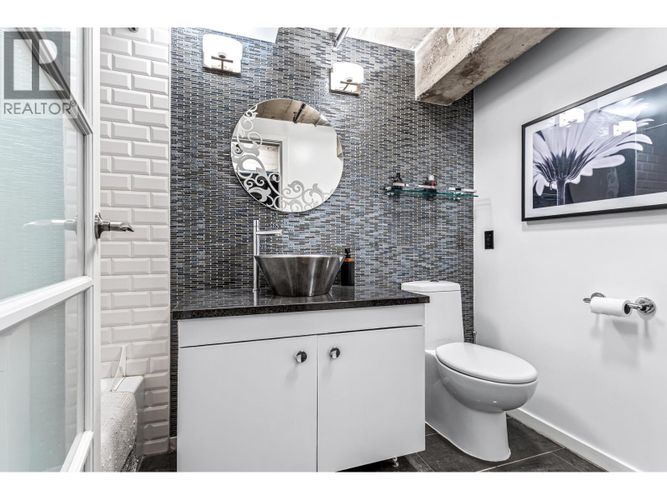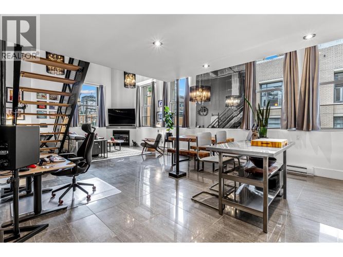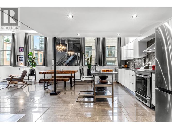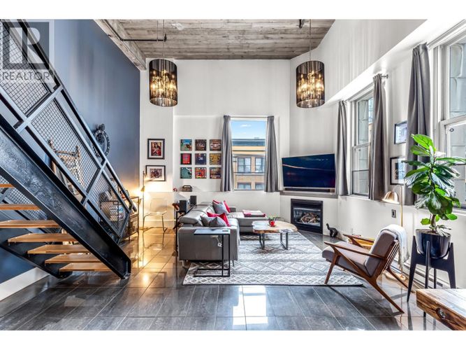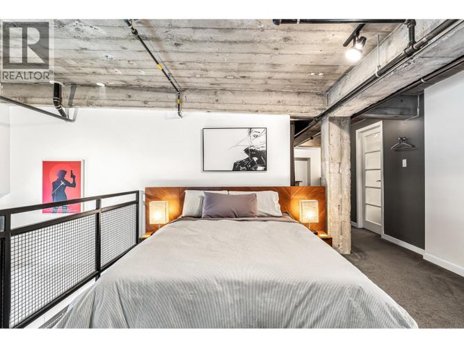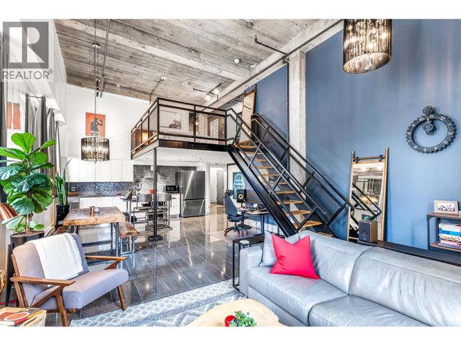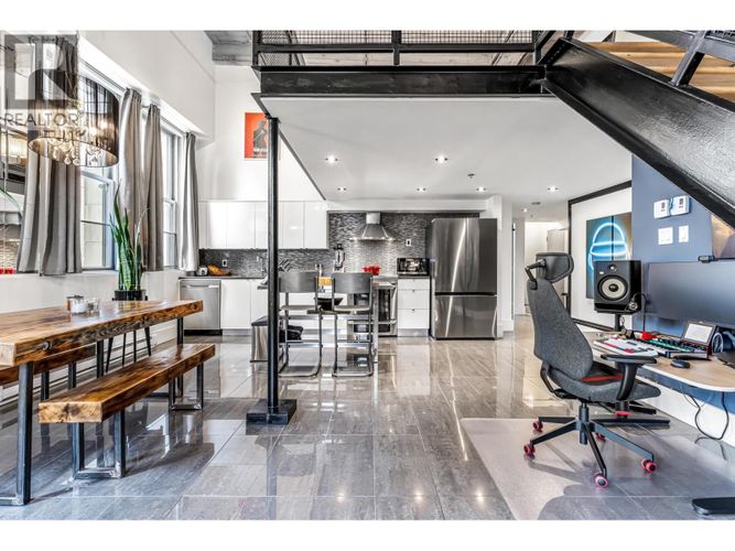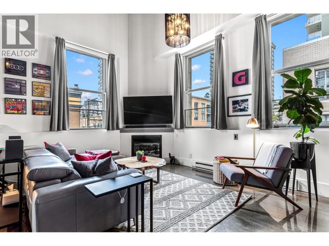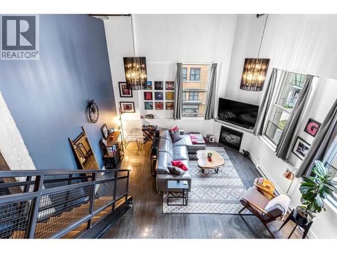 Step into this stunningly updated one bedroom, one and a half baths, loft, where modern elegance meets timeless charm. Featuring soaring ceilings, oversized windows, and an open concept layout, the space is flooded with natural light and thoughtfully designed for both comfort and style. The updated kitchen boasts high-end finishes, sleek cabinetry and stainless steel appliances, while the spacious bedroom offers a peaceful retreat. Ideal for entertaining or relaxing, this loft is a perfect blend of sophistication and function in every detail. Conveniently located in Downtown New West; close to transit, shopping, Skytrain and entertainment district.