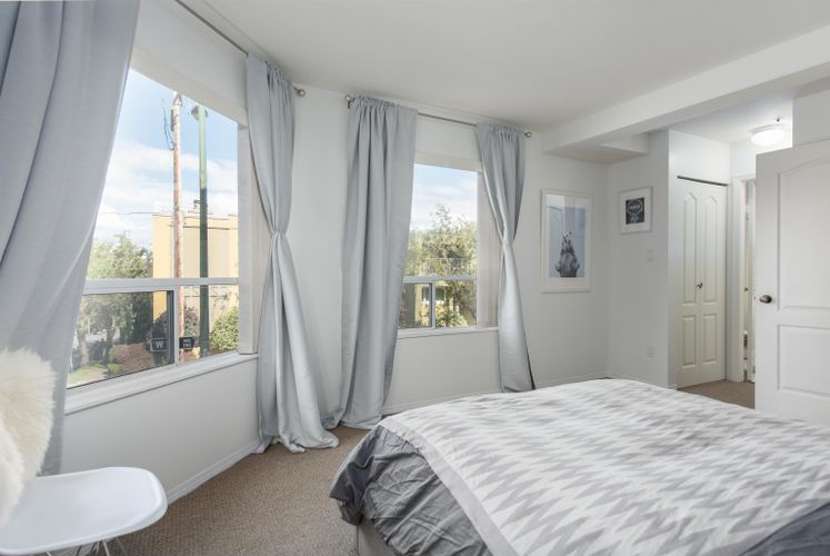 Spacious 3 bedroom reverse-layout townhome located in the heart of Fairview. The main living area showcases impressive city and mountain views and soaring ceilings. Enjoy cozy evenings by the gas fireplace, or relaxing on your private rooftop patio. Ideally located within walking distance to Broadway, Granville Island, & rapid transit. 2 parking stalls & 1 storage locker included. No dogs.