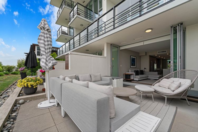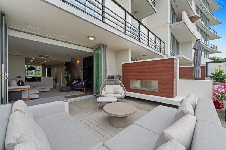 Experience waterfront living at The Peninsula by Aragon Properties, an iconic concrete building in the heart of Port Royal. This spacious 2-level waterfront townhome offers an oversized walkout private patio with stunning water views, gas bib, and fireplace—ideal for year-round entertaining. Inside features Gaggenau appliances, floor-to-ceiling windows, geothermal heating/cooling, and spa-inspired bathrooms with heated floors. Includes 2 parking stalls and a storage locker. Enjoy resort-style amenities with concierge, gym, and lounge. Steps to the Q-to-Q ferry, Quay, SkyTrain, shops & more. Open House: Saturday, March 21, 2–4 PM.