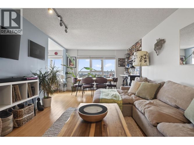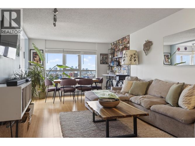 UNOBSTRUCTED PANORAMIC VIEWS FROM EVERY ROOM! Stunning 2-bed, 2-bath + flex corner suite w/ breathtaking, unobstructed panoramic city, water & mountain views. Flooded w/ natural light, this beautifully updated home features a contemporary kitchen w/ new quartz countertops & SS appliances, in-suite laundry & a smart, functional layout. Proper, large primary bedroom w/ plenty of room for king-size bed plus furniture. Well-maintained concrete, rainscreened building w/ live-in caretaker & strong contingency fund. PRIME QUIET LOCATION just steps to Bosa Foods & 1 block to Commercial Drive, surrounded by top restaurants, cafes, shops & amenities. Locker & 2 PARKING stalls included; EV charging possible. OPEN HOUSE SUN MARCH 8 @ 2-4PM - COME BY!