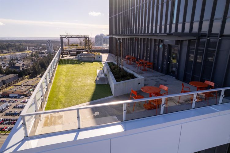Welcome to this bright corner 2-bed, 1-bath home offering 728 sq. ft. of smart, open-concept living. Floor-to-ceiling windows fill the space with natural light, creating a warm and modern feel. The efficient layout makes everyday living comfortable and practical, perfect for first-time buyers, downsizers, or investors. Enjoy access to a rooftop deck, gym, resident lounges, playground, and dog run, designed for both relaxation and connection. Just steps from Surrey Central SkyTrain, shopping, dining, and daily essentials, this home offers convenient city living within reach. Open House: Saturday, February 21st, 2–3:30 PM.