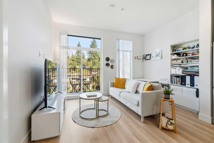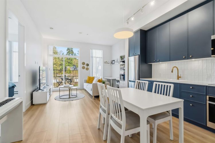Welcome to Allison, a new community built in 2023, quietly situated in the desirable neighbourhood of West Coquitlam. This bright corner unit boasts 2 large bedrooms, 2 bathrooms & is located just minutes from Lougheed Town Centre & the Evergreen Line. Showcasing Mosaic’s classic white-brick architecture, the home features oversized 7-foot windows for plenty of natural light, 10-foot ceilings & an open-concept layout with laminate floors throughout. The modern kitchen features blue cabinets with an integrated dishwasher, wall oven, textured backsplash & adjacent dining area. Enjoy your private balcony w/BBQs allowed. Amenities include a fitness centre, landscaped community courtyard, children’s play area, bike repair station, dog wash & meeting room. OPEN HOUSE SUNDAY MAR 29th 11 AM - 1 PM