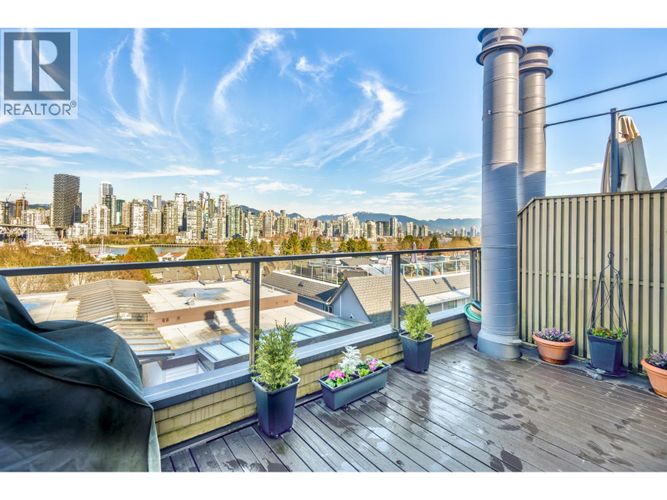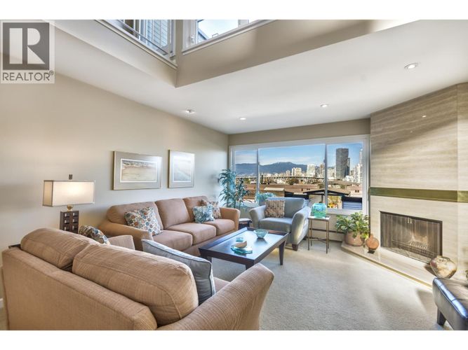 Fairview Slopes townhouse, offering nearly 1500sqft of living space over 3 levels now available at Marina Place. This bright and versatile home features two bedrooms, two bathrooms, and a spacious loft ideal for a large den or potential third bedroom. The living room boasts over-height ceilings and a cozy wood-burning fireplace. Head upstairs to a private patio with sweeping city, mountain, and water views of downtown. Two secure parking stalls equipped with EV charging included. The property is part of a well-managed, proactive strata that has completed recent updates, including the courtyard membrane and complex windows. Residents will enjoy living just moments from the False Creek Seawall, Granville Island, Broadway amenities, restaurants and transit lines. Showings by appointment