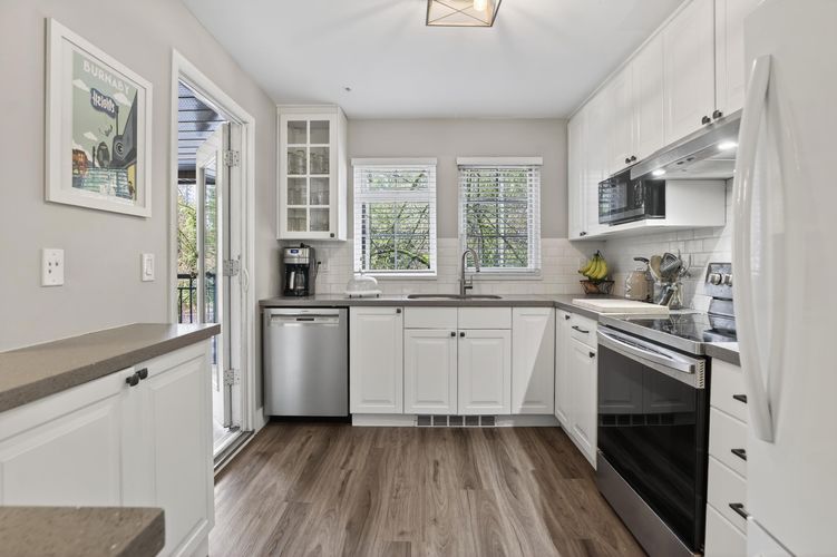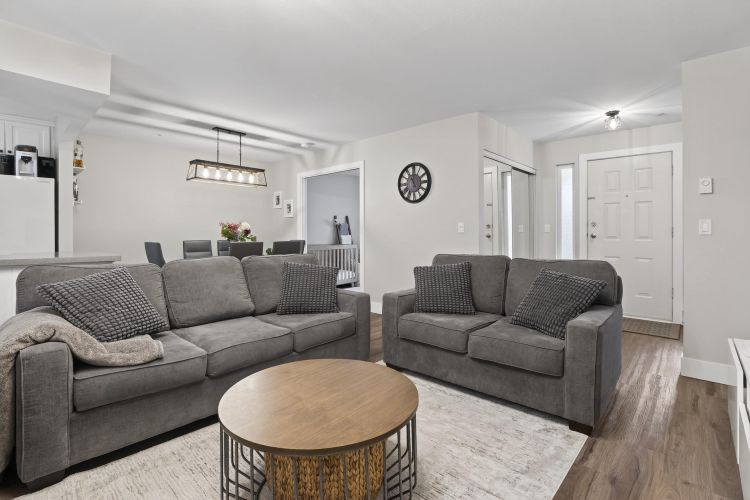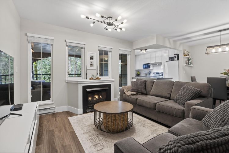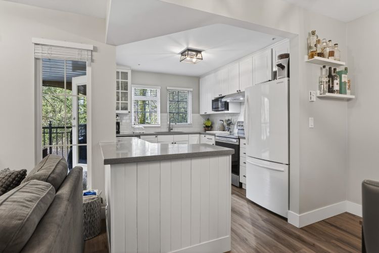 Nature Lover's Dream! Welcome to Lakeside Terrace. Enjoy your private entrance. NO ELEVATOR required. Nicely Updated, Large 2 Bed, 2 Bath, Lush Gardens, Lafarge Lake and Coquitlam Centre close by. Nice Covered Balcony to Enjoy All Year Long. Cook in Style in Your Renovated Gourmet Kitchen w/Quartz Counters, Luxury Laminate Floor & newer Appliances. Large Primary Bed has W/I Closet, Spa-Like 4pe Ensuite w/Sep Tub & Shower. Both Bathrooms Feature Quartz Countertops, New Flooring & Fixtures + XL Soaker Tub. 2nd Bathroom Leads to Laundry Room w/Front Load W/D & Storage. Well Maintained Complex, Strata Fee incl. Extensive Amenities: Indoor Pool, 2 Hot Tubs & Saunas, Natural Gas, Hot Water, Gym, Party Room & Furnished Guest Suite. Steps to Skytrain.