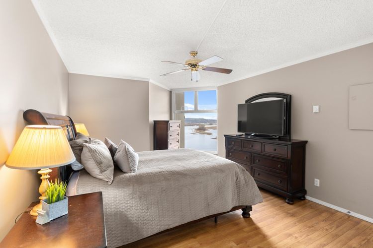 Soak in Breathtaking Unobstructed Fraser River, Mountain views from this bright, spacious 2 BDRM 2 BTHRM 14th floor home at Palace Quay! The open concept layout is filled w/ natural light from expansive windows that showcase the spectacular scenery throughout. Kitchen features S/S appliances, plus excellent flow for daily living & entertaining. Step onto your private EAST facing balcony to enjoy peaceful mornings & panoramic Fraser River outlook. Amenities include indoor pool, hot tub, fully equipped Gym, Games Room & Bike Room. Ideally located near Queen’s Park, Glenbrook Ravine Park, Aquatic Community Centre, Columbia SkyTrain Station, shops, dining, cafes in Victoria Hill. Pet friendly Building 2 pets OK-no size restrictions. 1 Parking & 1 Locker plus visitor parking!