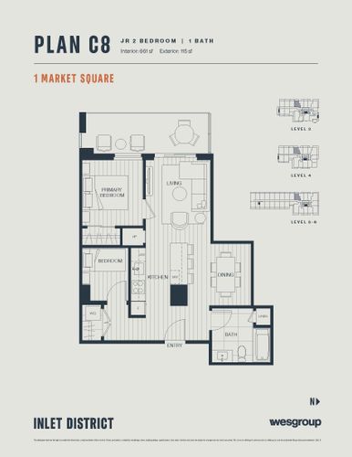 Welcome to 1 Market Square, the first phase of Port Moody's Inlet District with direct access to shops, a central park and the Skytrain. Offering studio to 3-bedroom homes with incredible views of the inlet and mountains, modern finishes such as Italian cabinets, quartz countertops, and wide-plank flooring. Residents enjoy exclusive access to curated amenities such as guest suites, an off-leash dog area, a games room, a chef's kitchen, and two outdoor cooking areas with stunning views. This west-facing Jr. 2-bedroom home features a thoughtful dining area, a linen closet, high ceilings and Fulgor Milano appliances-a perfect blend of comfort and elegance. Visit the Presentation Centre at 2541 Clarke Street, open Saturday - Wednesday from 11am - 4pm and closed Thursday - Friday.