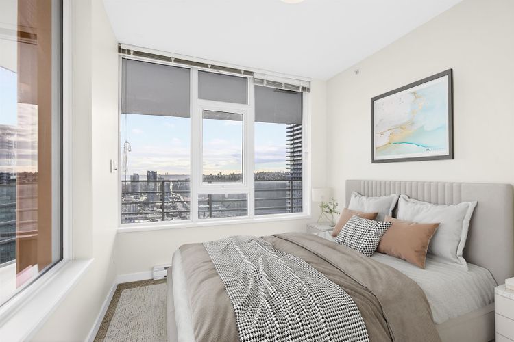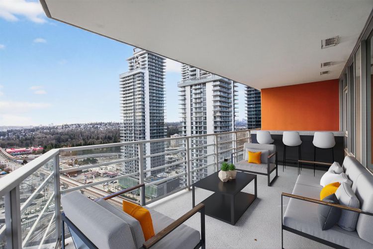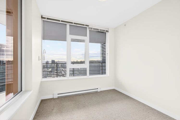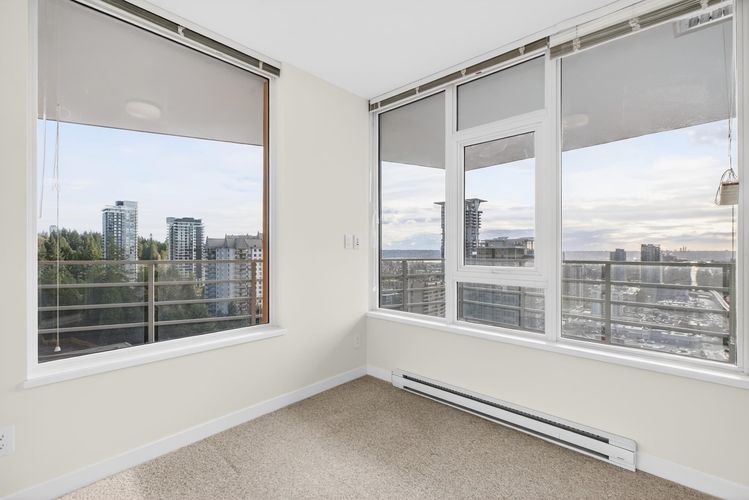 WOW, VIEWS FROM ALL ROOMS! Welcome to Brookmere Tower by Onni. This is a 3 bed, 2 bath, 988 sqft unit w/ an impressive 295 sqft SE facing deck on the 17th floor. Take in mountain, water & city views w/ a morning coffee or your evening downtime. Bright open layout w/ floor to ceiling windows, modern kitchen w/ quartz counters, gas cooktop, full-size S/S appliances & large peninsula for entertaining. Two clean, contemporary bathrooms & walk through closet. Resort style amenities include gym, yoga room, theatre, games room, lounge, party room, guest suites, BBQ area, playground & community garden. Steps to SkyTrain, shops & restaurants. Includes 1 parking and 1 locker. Easy to show, contact for your private showing! OPEN HOUSE Sun March 29th 2:30-4pm