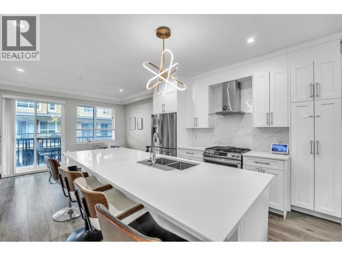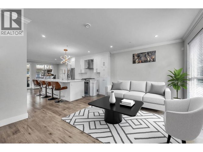 Queensborough townhouse | 3 bed 3 bath | 1,528 sq ft | 2021 built. Stanley Green inside unit with open concept main floor, high ceilings, quartz countertops, white shaker cabinets, gas cooktop, and stainless steel appliances. Radiant in-floor heating throughout. Covered balcony with gas BBQ hookup. Private fenced yard. EV-ready double garage. Porcelain tile bathrooms, in-suite laundry. Family-friendly complex steps from parks, green spaces, and Port Royal waterfront trails. Queensborough Landing shopping (Walmart, Home Depot, Starbucks) minutes away. 25 min to downtown Vancouver, 12 min to Richmond, 8 min to 22nd Street SkyTrain. School catchments: Queen Elizabeth Elementary, Queensborough Middle, New Westminster Secondary. Pets allowed, rentals allowed - photos virtually staged