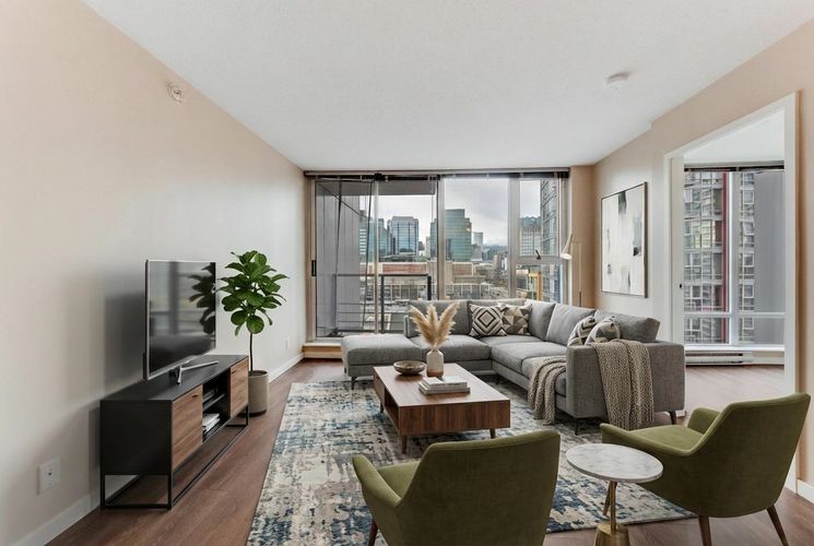 ATTN INVESTORS & First Time Buyers! If you love COSTCO and convenience, this is a perfect spot for you at a GREAT PRICE in the heart of downtown! Fantastic 507 sqft junior one bedroom at Spectrum 3. Open concept floor plan facing north with newer laminate floors, fresh countertops and appliances, floor-to-ceiling windows that flood the space with light, nice balcony, pleasant city and peek-a-boo water view, with a flex room used as an office or storage. You have access to Club Ozone and its indoor pool, hot tub, fitness center, party room and concierge. All this in the heart of the action, just steps to the stadiums, Costco, T&T supermarket, Skytrain, restaurants and shopping. Come have a look today! (Photos virtually staged) Open House: SAT 4/5/2026 2-4pm
