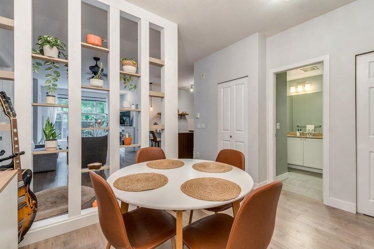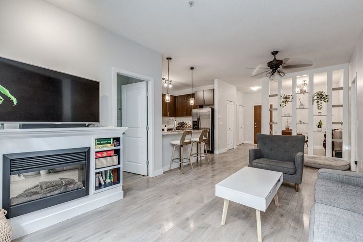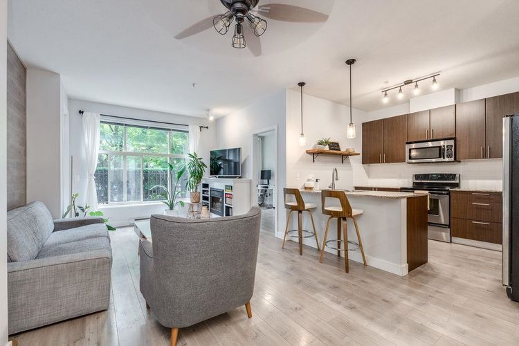 Welcome to your new home! This ideally situated, immaculate ground floor 2 bedroom 2 bathroom unit with private entrance is the perfect starter, downsizer or investment property! Recent upgrades include laminate flooring throughout, granite counters, lighting, and fireplace surround, custom dining room wall feature, paint and more! The ground floor location offers a huge gated balcony with private street entrance just half a block to the newly refurbished Gates Park and all the shopping, recreation, restaurants and transit Downtown Port Coquitlam has to offer. Comes with 1 underground parking spot plus gym and a theatre room! Excellent quality building, very well run strata, everything you need in one convenient location! Book your private showing today!