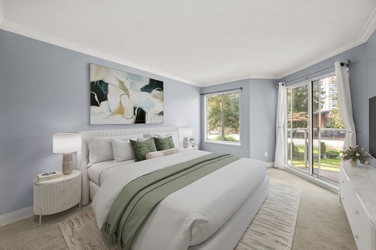 BEAUTIFULLY UPDATED & AFFORDABLE! Bright 2 Bed / 2 Bath in the heart of Coquitlam Centre, just steps to SkyTrain, schools, parks, shops, and restaurants. Features a modern kitchen, updated bathrooms, fresh paint, and a spacious layout with a cozy gas fireplace and large 18x6 balcony with mountain views. The oversized primary bedroom offers a walk-through closet and 4-piece ensuite. Located directly across from Glen Park with a dog park, playground, and sports courts—perfect for an active lifestyle. Includes 1 parking and storage in a pet- and rental-friendly building. A smart investment with future potential. Move-in ready—exceptional value!