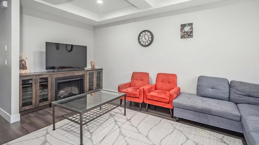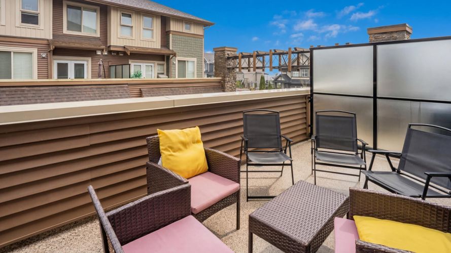 Welcome to Terraces II, a spacious and well-designed townhome featuring 4 bedrooms plus a versatile den and 3.5 bathrooms. The bright open-concept main floor offers a large island kitchen with quartz counters, stainless steel appliances, and generous dining space, perfect for entertaining. The living room features built-in cabinetry and an electric fireplace. Enjoy outdoor living with a 20’ x 10’ deck with gas BBQ hookup, plus a fenced yard and patio for kids and pets. Upstairs features spacious bedrooms and a vaulted primary suite with double sinks and oversized shower. The finished basement with full bathroom works perfectly as a rec room or 4th bedroom. Nook is perfect for a home office. Side-by-side double garage and beautiful mountain backdrop. Come visit now, this won't last!!