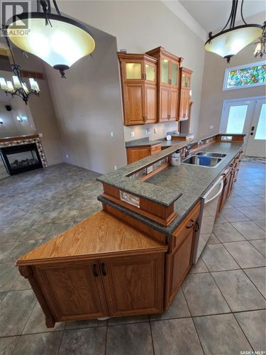Welcome to 605 Elgin Street, a beautifully designed 1621 sq. ft. modified bungalow set on a massive 0.62-acre lot in one of Weyburn’s most desirable neighborhoods. This spacious 4-bedroom, 3-bathroom home combines comfort, style, and functionality, with plenty of indoor and outdoor living space. The exterior boasts attractive vinyl siding accented with stonework, and the property offers excellent curb appeal. A full double attached garage with direct access to the home is complemented by a large shop/man-cave at the back, creating the perfect space for hobbies, storage, or entertaining. Inside, the main floor features tile and carpet flooring, along with a large, fully equipped kitchen complete with abundant cabinetry and handy floor-sweep central vac outlets. Adjacent to the kitchen, the dining and living rooms are perfect for family gatherings, offering built-in shelving and direct access to the backyard. A few steps up, you’ll find a large bedroom with laminate flooring and a walk-in closet, plus two additional bedrooms. The main bath is a showstopper, featuring a soaker tub, separate shower, and modern vanity. The lower level is designed for relaxation and function, with a carpeted family room, a newly extended bedroom (could easily serve as a master suite), and a stylish 3-piece bath with a custom walk-in shower. Laundry and utility areas complete this level. Outdoors, this property truly shines. The raised deck with inset hot tub, privacy screen, and flower beds offers the perfect retreat. Beautiful stone water features and a 3-season room with fan, heater, and windows expand your living space. The backyard also includes two large sheds with walk-in/roll-down doors, a third storage shed, and a fenced garden area, with no neighbors behind for added privacy. Spacious, versatile, and in a well-established neighborhood, properties like this—with oversized lots—are rare and highly sought after. Don’t miss your opportunity to own this unique home on Elgin Street. (id:26452)