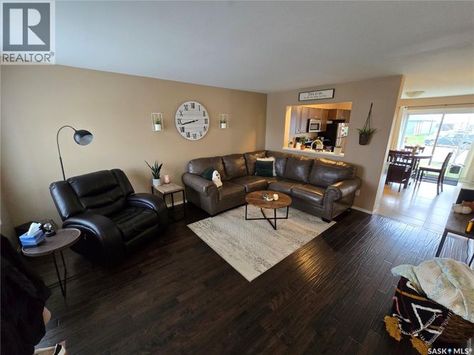 Welcome to #6 815 5th St NE - part of Ivy Greens Townhome Complex. This stylish and modern 1,134 sq. ft. townhouse was built in 2012 and is well-designed, offering contemporary finishes, functional living spaces, and a location that combines convenience with comfort. Whether you’re an investor seeking a proven income property or a buyer looking for affordable luxury, this home checks all the boxes. Step inside to find a bright, open main floor featuring dark hardwood floors and tiled kitchen and dining areas. The kitchen boasts quartz countertops, stainless steel appliances, and plenty of cabinetry. From the dining area, sliding patio doors open to a back patio — perfect for morning coffee or evening BBQs. The main level is also equipped with air conditioning, ensuring comfort during warm summer months. Upstairs, you’ll find two cozy guest bedrooms, a full bathroom with quartz countertops matching the kitchen, and a spacious primary bedroom with a large sleeping area, walk-in closet, and abundant natural light. The thoughtful layout makes the upper level ideal for families, professionals, or shared living arrangements. The fully finished basement adds valuable living space, including a second family room, a three-piece bathroom, and a large fourth bedroom with a walk-in closet. The utility and laundry area offers additional room for storage and convenience. This townhome has been a reliable rental property, demonstrating strong rental demand and minimal vacancy over the years. It’s also ideal for owner-occupants seeking a low-maintenance lifestyle with modern features. Located next to the new hospital and special care home, and blocks from city schools, this property offers unmatched convenience. With two parking stalls and quick access to 5th Avenue and Highway 35, commuting to Regina or around Weyburn is simple and efficient. Modern, practical, and ideally situated — This townhome offers tremendous value in Weyburn’s thriving real estate market. (id:26452)