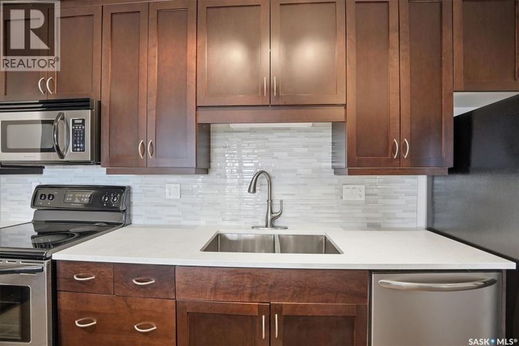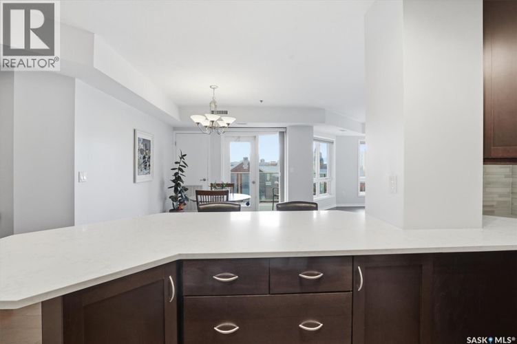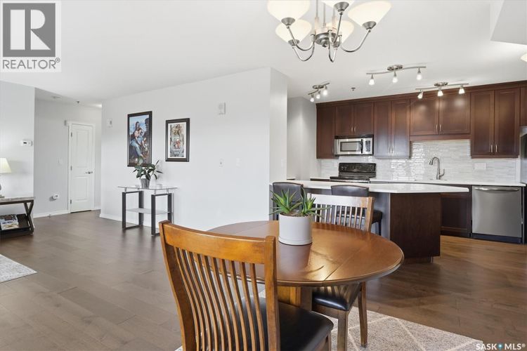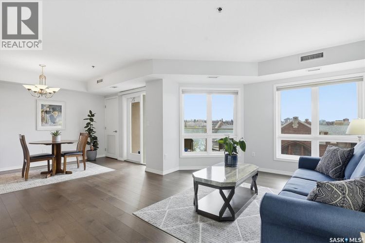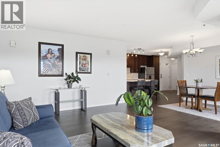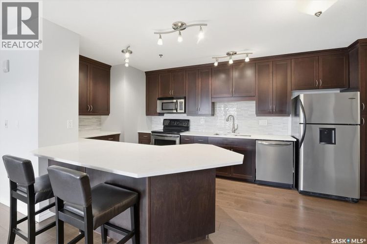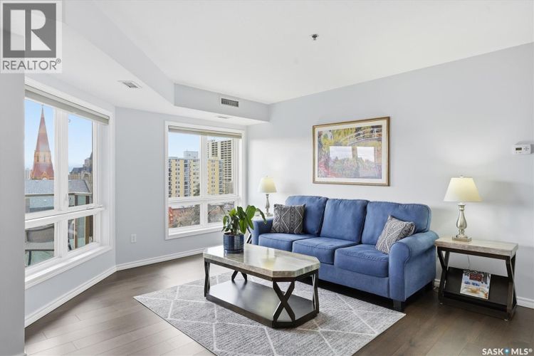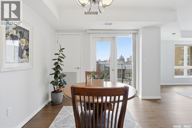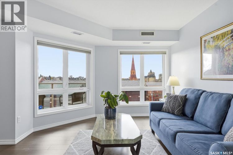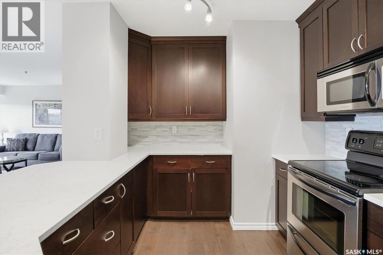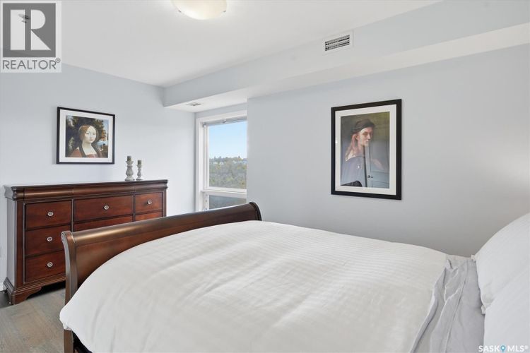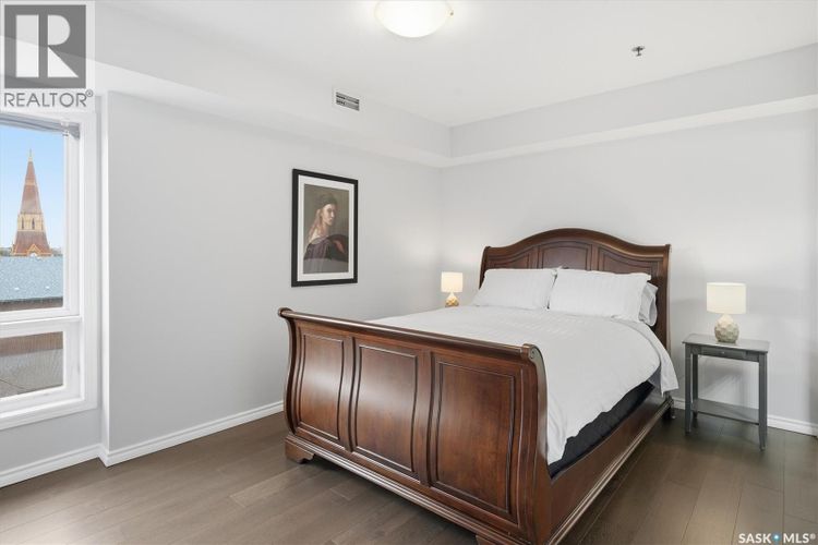 Experience riverfront living in this stunning southeast-facing LUX condo in the heart of downtown Saskatoon. Offering 1,155 sq ft, this 2-bedroom, 2-bath unit features an UPDATED bright, open floor plan designed to take full advantage of the natural light and breathtaking river views. The kitchen is beautifully finished with modern cabinetry, newer gleaming quartz countertops, and stainless steel appliances, opening to a spacious living and dining area with newer engineered hardwood flooring throughout. Two spacious bedrooms, 2 full baths, and a primary walk-in closet, plus an in-suite storage/laundry room, complete this lovely floor plan. Enjoy relaxing or entertaining on the private balcony with a natural gas BBQ hookup, overlooking the river, Bessborough, and Broadway Bridge. This unit includes 1 heated underground parking stall and a heated storage unit for added convenience. The building offers fantastic amenities, including a fitness room, a meeting room, and two guest suites. Ideally located along the Meewasin River Trail and park and steps from downtown restaurants, shops, and entertainment- the best of what our city offers!! (id:26452)