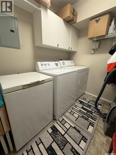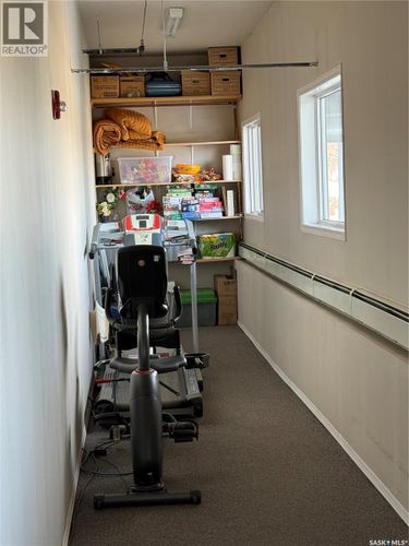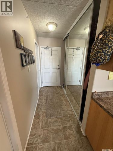 Fantastic 2 bedroom, 1 bathroom condo located on the second floor with desirable west-facing exposure! This bright and inviting unit offers a spacious open-concept layout with a cozy living room, room for a dining table, and a functional kitchen featuring plenty of cabinet space. One of the standout features is the spacious in-suite laundry room with a spot for a freezer and additional storage, plus multiple storage closets throughout the unit, giving you exceptional room to stay organized. Step outside to the generous west-facing balcony, the perfect spot to relax and enjoy the evening sun, complete with its own storage closet. The building offers secure access with an intercom system, elevator service, and one assigned parking stall in the heated main-floor garage. You’ll also enjoy the beautifully updated lobby and common room, ideal for hosting visitors or family gatherings. This well-established building is known for its strong sense of community and many long-term residents, reflecting true pride of ownership. Moderate condo fees include heat and water, and there is ample visitor parking available in the exterior lot. A fantastic opportunity for comfortable, low-maintenance living in a welcoming and well-cared-for building! (id:26452)