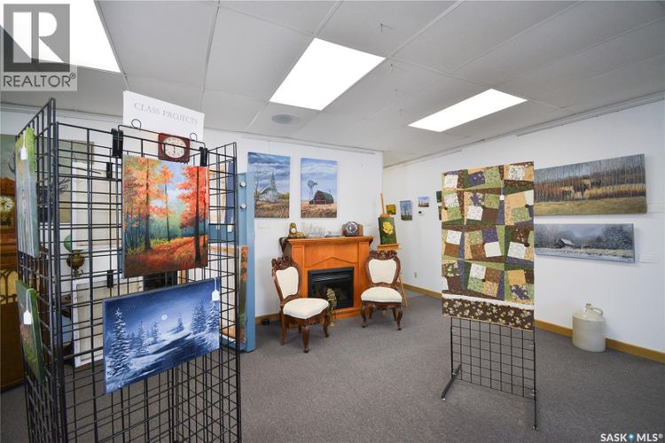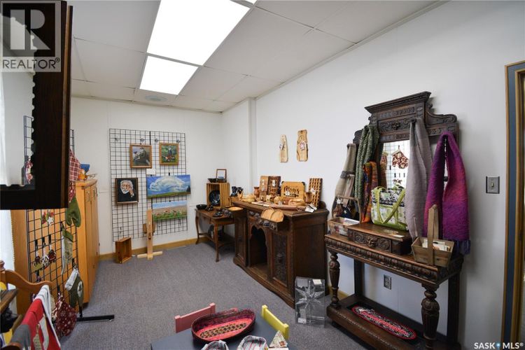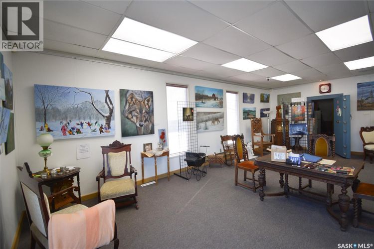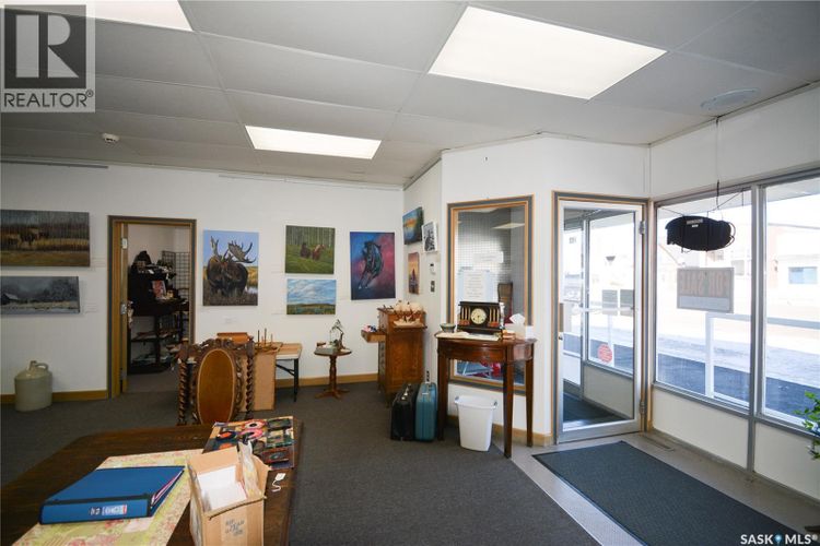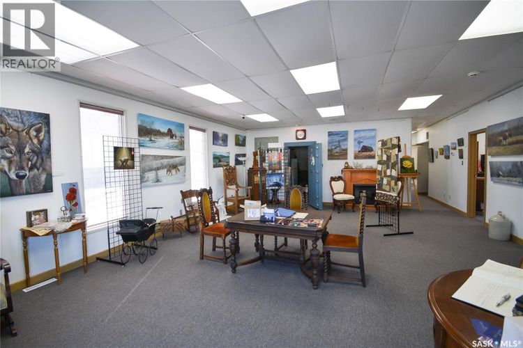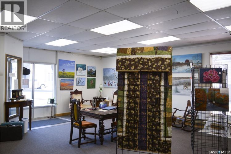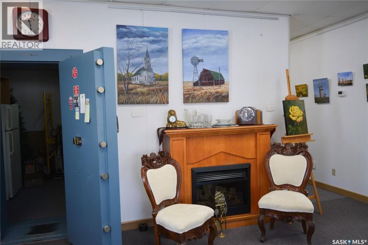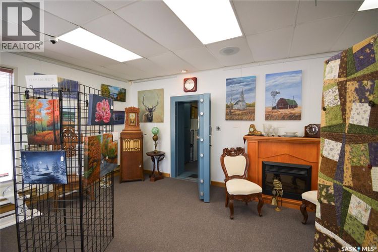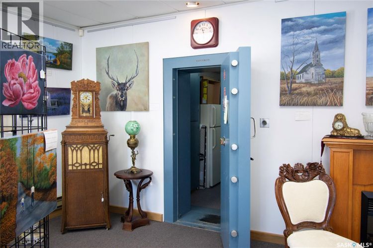 Ideally located near Last Mountain Lake, this versatile commercial property in Govan offers excellent potential for a variety of business ventures. Formerly a credit union and currently operating as an art gallery, the building provides 2,180 sq. ft. of functional space on a generous lot of over 9,000 sq. ft. The exterior features durable, low-maintenance metal cladding, while the rear of the property includes convenient parking with two electrical outlets. A 10' x 12' storage shed is also included, complete with an existing mower. Inside, the front entrance opens into a spacious, open-concept area currently used for art display, offering flexibility for retail, office, or showroom use. This main space connects to a secure safe, two additional rooms, and leads toward the rear of the building. Along the way, you’ll find a washroom and utility room. The substantial rear area expands your possibilities further, featuring a second washroom, a custodial room with sink, a kitchen area, and an additional safe. Most lighting throughout the building has been upgraded to energy-efficient LED fixtures. This well-maintained property presents a fantastic opportunity to establish or expand your business in a welcoming community close to the lake. (id:26452)