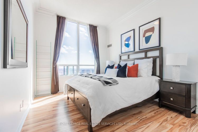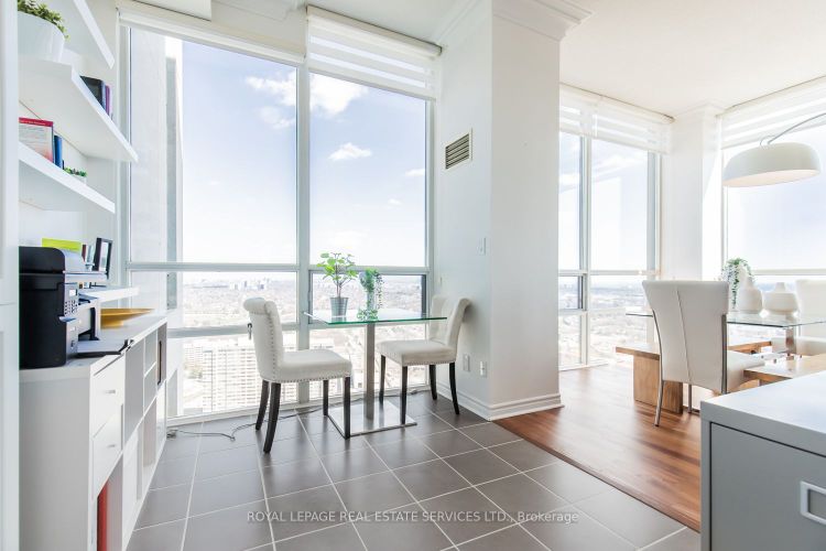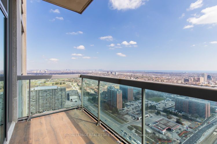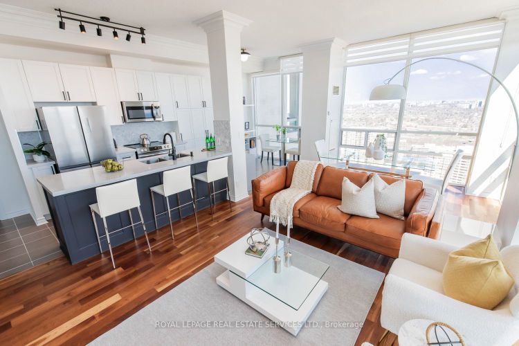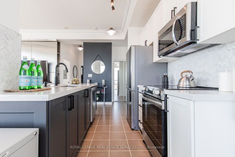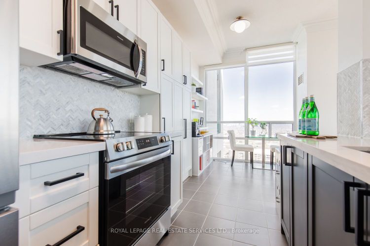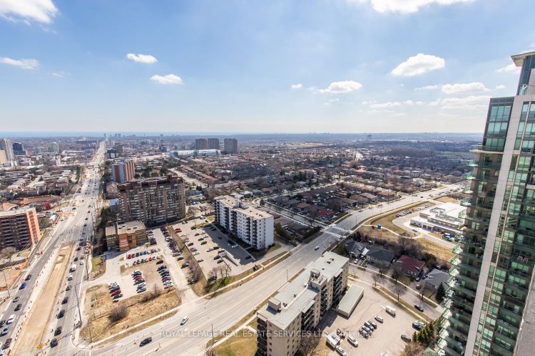 Absolutely stunning lower penthouse corner unit! 2 bedrooms + den + 2 full bathrooms. Comes with 2 parking spots and 1 locker!!! Amazing high ceilings with large floor to ceiling windows, flood the main living area with all-day natural light! Gorgeous kitchen, large island with breakfast overhang, herringbone backsplash, and stainless steel appliances. The convenient den opens up to the grand living / dining area. Step out to your balcony with updated flooring to take in the absolutely breathtaking lake views and downtown Toronto skyline! Perfect spot to sit and enjoy a cup of coffee on those warm summer mornings. The primary bedroom features a walk-in closet and a beautiful spa-like ensuite. The 2nd bedroom is a great size and conveniently located close to the 2nd bathroom. This building features loads of great amenities including 24hr concierge, playground, indoor pool, guest suites, games & media rooms, party room, sauna, and gym. Amazing location! Short 5 minute drive to Square One, Sheridan College, Public Transit, Walmart, Metro, Banks, Restaurants, and so much more! What's not to like?!?