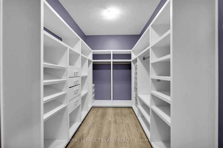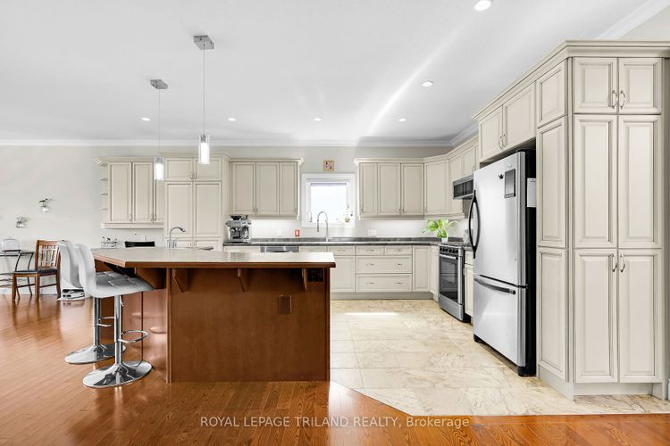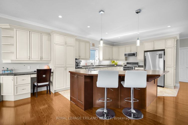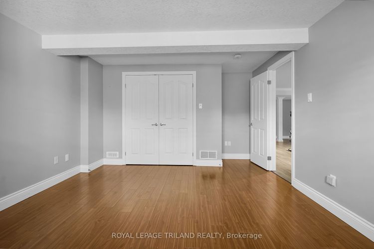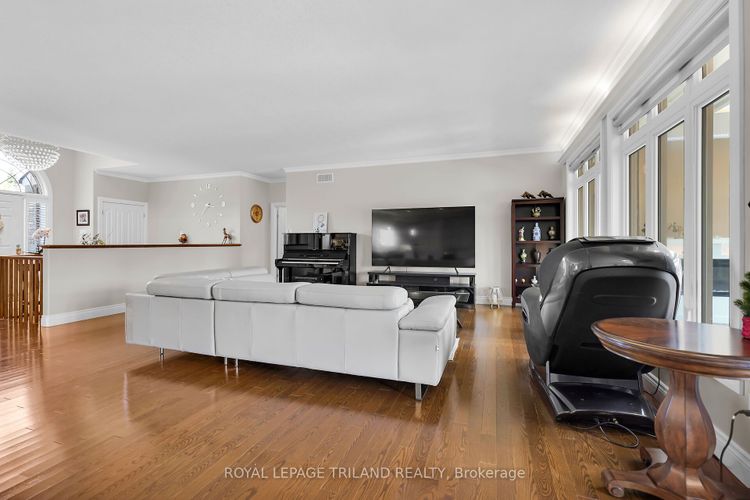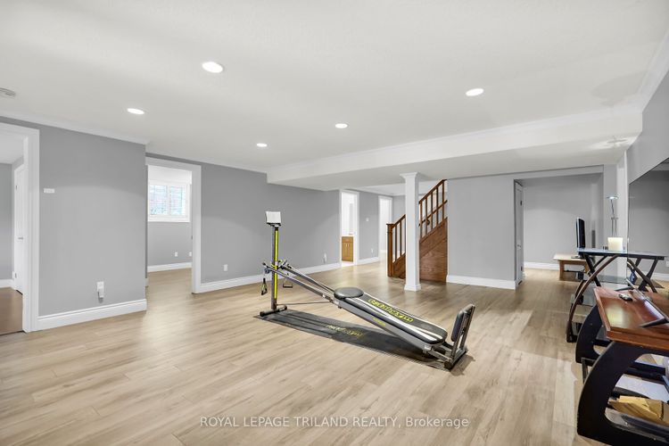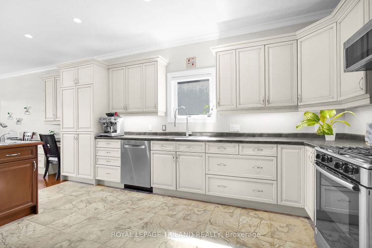 This executive custom built ranch located in a desirable South London neighbourhood comes with 5 bedrooms, 3 bathrooms. This home is spacious enough for most families and yet still retains that cozy feel. Located on a premium walk out lot backing on to a green belt, with mature trees which can be enjoyed from its patio. The open concept main floor along with a finished walk out lower level will provide ample living space. Primary Bedroom has an oversized customized walk in closet. (id:26452)