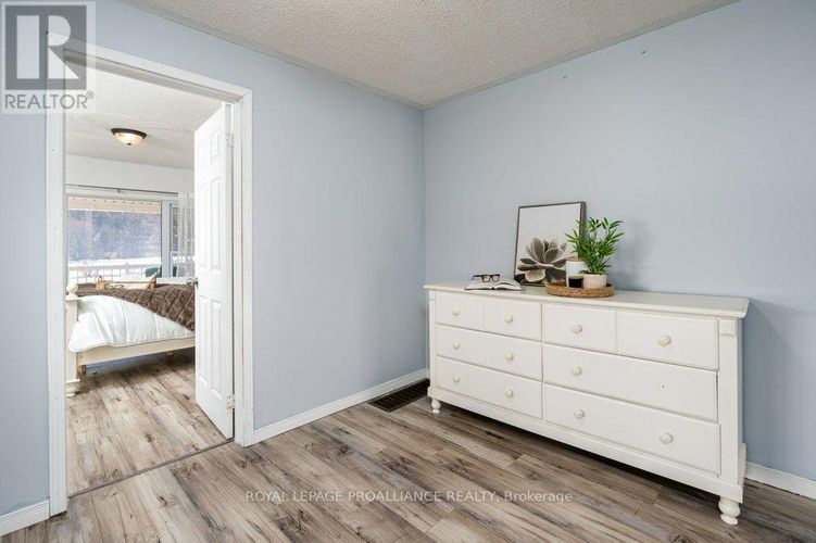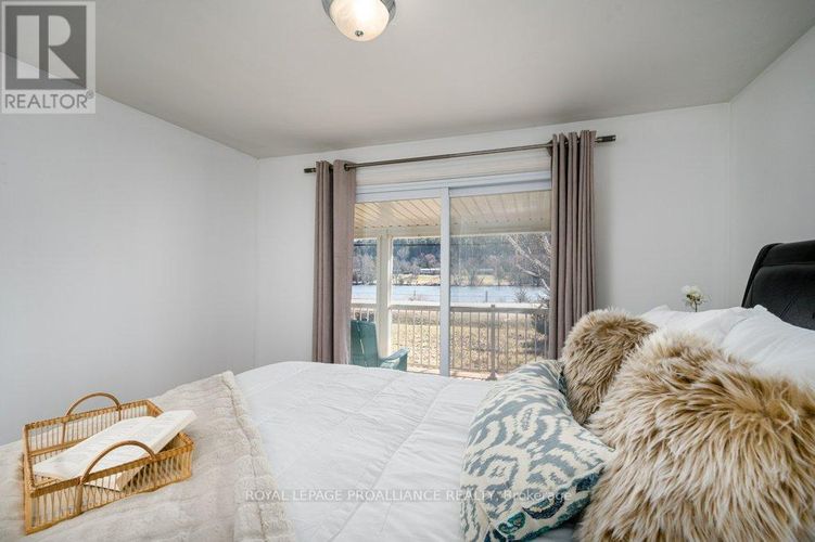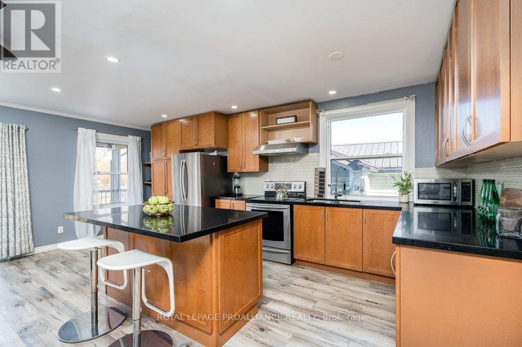 Check out these views! This beautiful bungalow is located just south of Frankford situated across from the Trent River boasting beautiful water views right from your front porch! This unique property is situated on just under half an acre (0.44 acres) while offering municipal water and sewer. The interior is updated with newer tile & laminate flooring, forced air gas furnace (approx 2010), gas fireplace & central air. Enjoy a stunning open kitchen/living area with gas fireplace, maple cabinets to the ceiling, granite counters/island with seating. The patio door off the kitchen/living area showcases the rear covered deck where you can enjoy the oversized lot and backyard oasis. Primary Bedroom has sliding patio door overlooking the water & access to covered front porch. This beautiful bungalow also offers two other spacious bedrooms and a bonus room would make a great home office setup. Main bathroom is 3 piece; shower, tiled floor & laundry. Ensuite bathroom has sink & tub/shower. Other features include: crown moulding, marble floors in foyer and a virtually maintenance free metal roof on both home and garage. A handyman dream with a detached 1.5 car garage for all of your tinkering/workshop desires. Amply parking spaces available in the large driveway. Book your showing today! (id:26452)