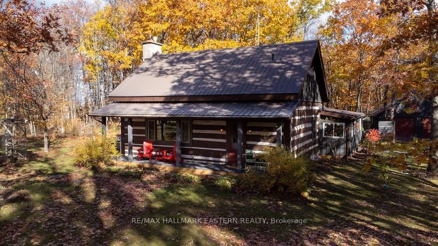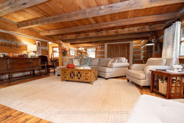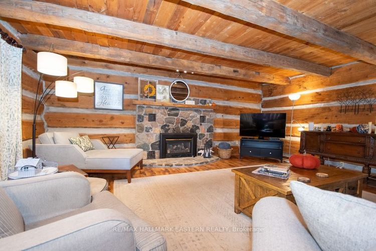 Hand-crafted with Hewn Log Design for Exceptional Stability & Energy Efficiency: Gorgeous log home, known locally as Whippoorwill House, with the classic look of earlier days forward engineered for modern comfort & functionality. Home features a deep, poured concrete foundation, full basement, steel roof, easy access septic & high flow well built on a .98 acre garden-filled & oak treed lot, with a log planter's shed & parking for 8 cars. Modern Amenities: Two beautiful fireplaces have been retrofitted from wood to propane, while forced air heating/air conditioning warms & cools all 3 levels. Washrooms have been fully rebuilt. The kitchen 20'11 x 11'75 has loads of cupboard shelf space, quartz counter tops, double stainless-steel sink, dishwasher, coffee/tea centre, refrigerator/freezer, stove with air fry, overhead power vent with integrated microwave dining area for 6.The huge living room/dining room 30'4" x 20' features 18" rustic log walls & beams, a picture window & reinforced beautiful stone fireplace. It's a perfect place for quiet evenings & large family functions. The guest room on the main floor, overlooks the garden & woodland, adjacent to the washroom & near the 29'3" x 10'7" fully insulated sunroom. The master 20'3" x 16'5" bedroom suite is located on the upper level with walk-in closet, storage loft, adjoining washroom & convertible 13'7" x 12'3" office/studio or 3rd bedroom. Both feature skylights. The level lower reveals a finished 30' x 20' recreation room with its own fireplace, which is the hub for social gatherings as well as a coveted "man cave". It adjoins a large 25' x 17' laundry/crafting room with loads of storage & cupboards & a 12.5' x 10'3" furnace/workshop & utility room. There is a double garage ideal for 2 cars, a workshop or tradesperson. This stunning home is a truly unique, must-see property located close to schools, churches, 5 golf courses, entertainment, arenas, parks, trails, shopping, banks, a hospital & services. (id:26452)