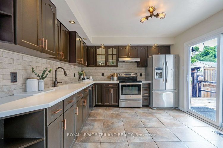 Welcome to this spacious 6-bedroom, 2-bathroom raised ranch offering over 1,800 sq ft of finished living space, ideal for growing families, multi-generational living, or those looking to develop a secondary suite/ space for teens or in-laws. Located in one of Port Stanley's most desirable neighbourhoods, this home offers the perfect balance of beach-town charm and quiet residential living. Just minutes to downtown, the beach, marina, golf, theatre, shops, and dining, yet tucked away from the hustle and bustle, with quick access to St. Thomas. Step inside to a bright tiled foyer with soaring ceilings, closet, and inside entry to the garage. The main floor features hardwood floors, a sun-filled living room with a cozy gas fireplace, and an eat-in kitchen with Corian countertops, a tile backsplash, and sliding patio doors that lead to a fully fenced backyard. The spacious primary bedroom includes a large closet with organizer and private access to the 5-piece cheater ensuite with a double vanity. Two additional bedrooms and a generous linen closet complete the main level. The fully finished lower level offers incredible flexibility with 3 more bedrooms (all with closets), a full 3-piece bathroom, and a large family room and potential space for a kitchenette perfect for an extended family, a teenager retreat, or an in-law suite. Enjoy the outdoors with a two-tier deck, flagstone patio, hot tub under a rustic gazebo, and handy storage shed. With updates including central air, patio doors, some windows, and water softener, this home is move-in ready and full of potential. Don't miss your chance to live year-round in Port Stanley, where lifestyle meets location and opportunity awaits.