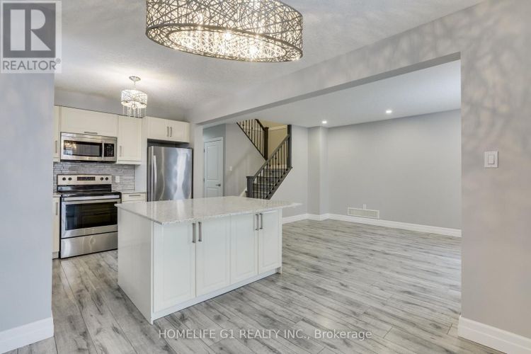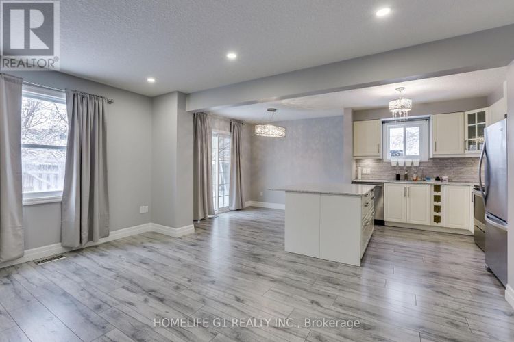 Incredible Location and Spacious Home, Perfect size for a growing family. Enjoy an Open Concept Main Floor with Laminate flooring and beautiful upgraded light fixtures and pot light galore. Elegant Kitchen with Granite Countertops, Generous size kitchen island perfect for entertaining your guests. Enjoy a spacious living room and main floor 2 Piece Powder. Traditional dinette area with sliding doors Walks out to huge backyard. Second floor offers a wood staircase with iron pickets. Master features a Semi-Ensuite bath and large double door closets. Upstairs Bathroom is very spacious and has a convenient double sink vanity. Home is very cozy and feels very private, super clean, well-kept home with lots to offer. Beautiful, finished basement with pot lights and open concept floor for plan. Roof completed last year2024. Home also has a side garage entry. Check out the huge back yard, great for entertaining, Lots of parking and much more. Close To Schools, Parks, Trails, Shopping and Restaurant. (id:26452)