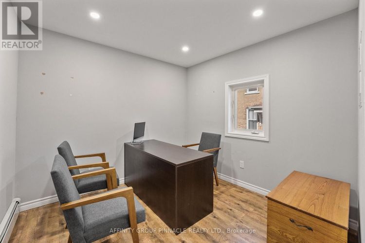 Welcome to this versatile mixed-use Building (MRC Zoning) with modern finishes and exceptional visibility, offering a unique opportunity for business owners, investors, or live-work entrepreneurs looking for an office space or studio. The main level is thoughtfully designed with a warm and inviting reception area, complete with a stylish 2-piece bath and convenient wet bar. Two private office spaces provide quiet, focused work environments, while the spacious, open-concept area is ideal for team collaboration or client meetings. With double doors, this versatile space can also serve as additional private offices if needed. Downstairs, the finished basement includes a full 4-piece bathroom and a flexible area thats ideal as a staff lunchroom, storage space, or bonus workspace. Upstairs, discover an oversized 1-bedroom, 1-bath apartment. With its own private entrance, this self-contained unit boasts a spacious living area, in-suite laundry, a fabulous finished loft space and separate hydro meter. One gas/water meter for whole building. Additional highlights include wheelchair-accessible rear entry, ample client parking, and a professional yet welcoming atmosphere throughout. Don't miss this rare opportunity to own a stylish, multi-functional property thats as practical as it is impressive. (id:26452)